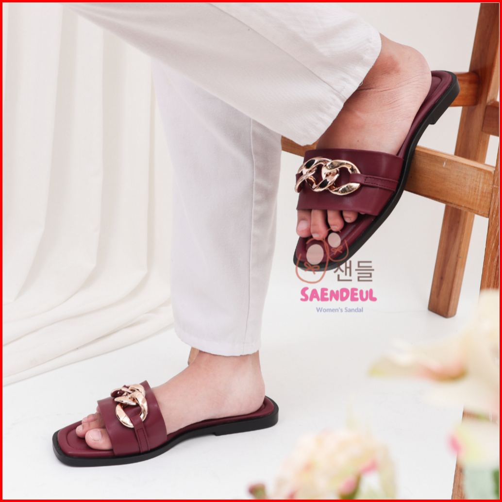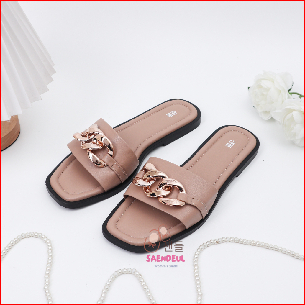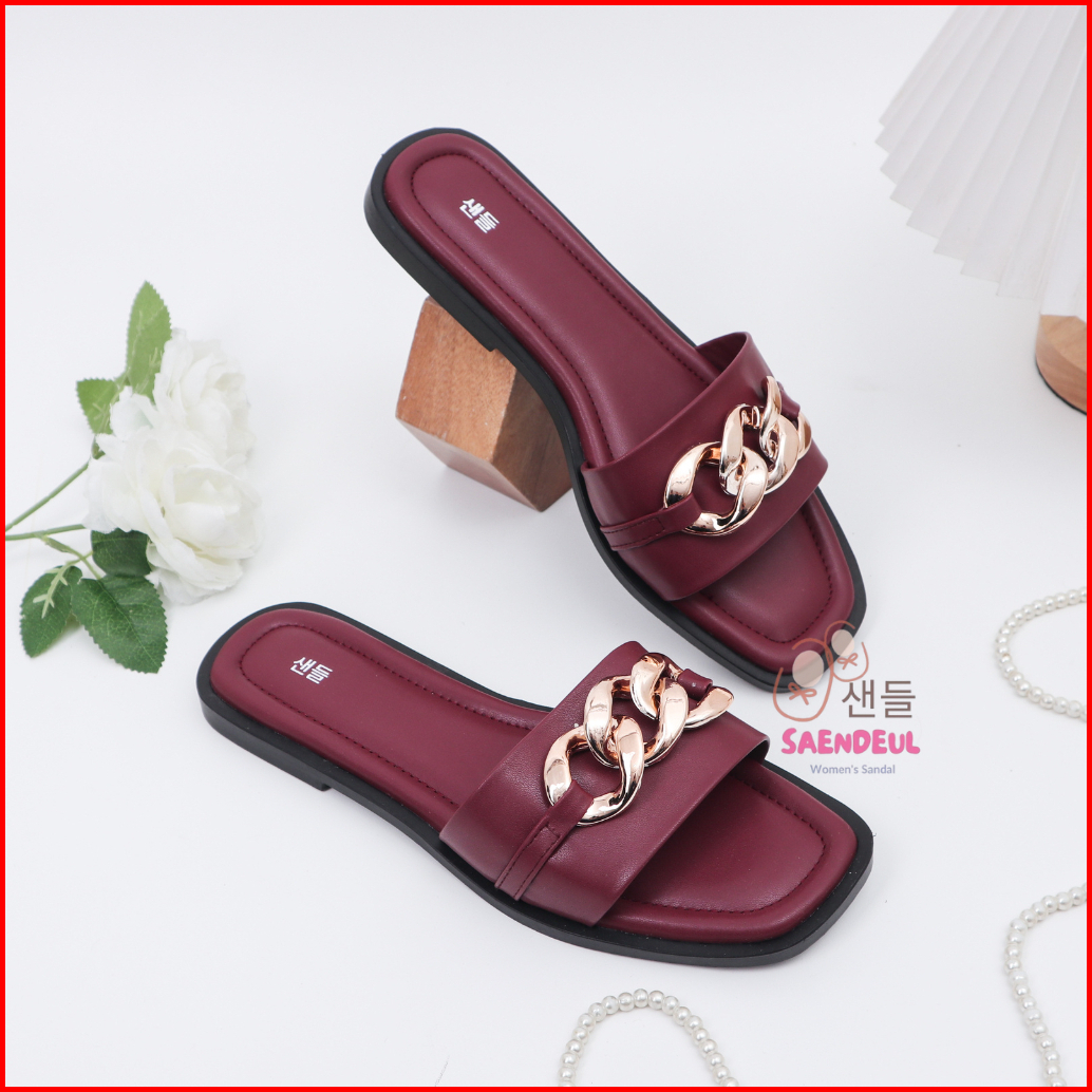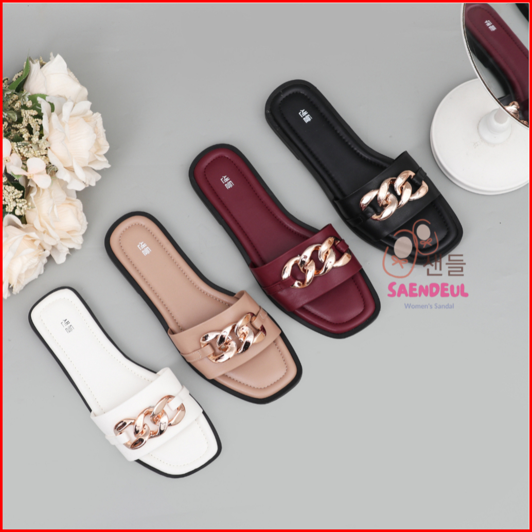 Saendeul Sohyun Sandal Slip Korean Wanita Teplek Sendal Flat Kekinian Terbaru Santai