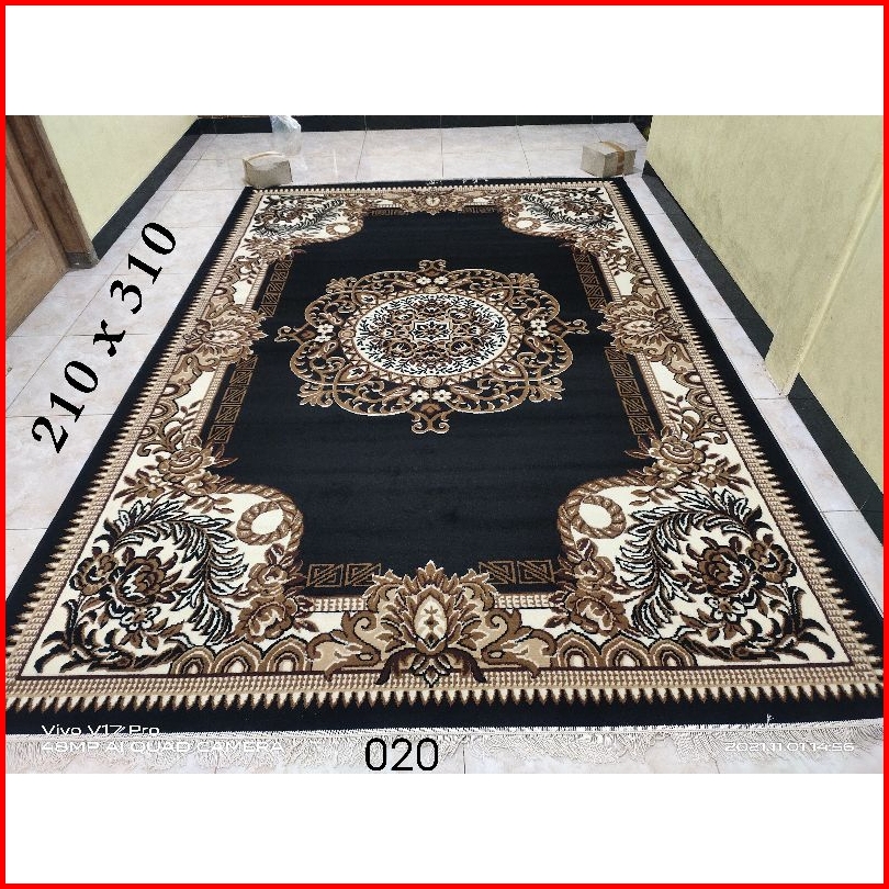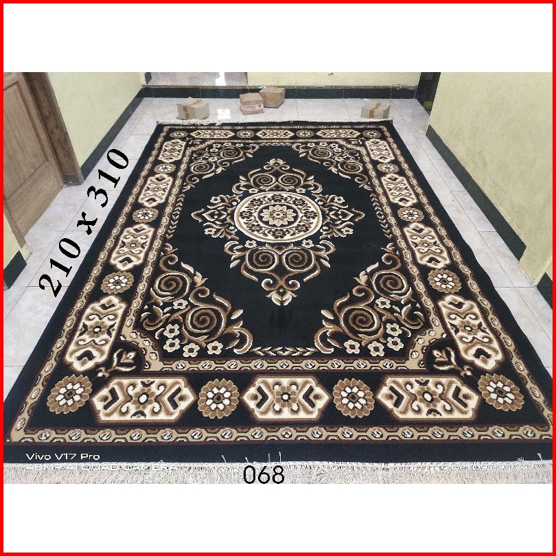 Karpet Permadani Motif Hitam Anti Selip Uk 210x310 Cm