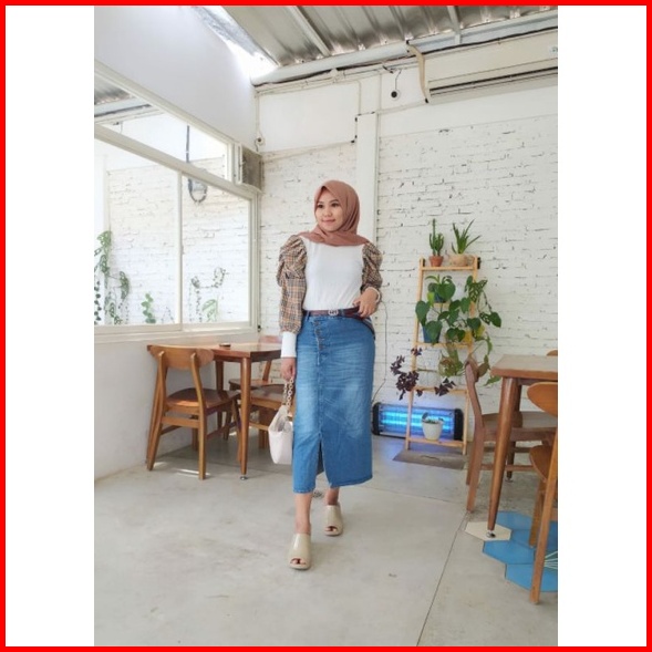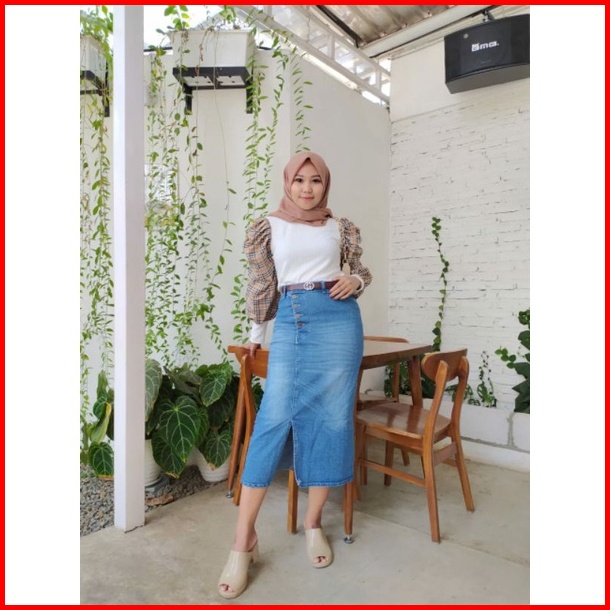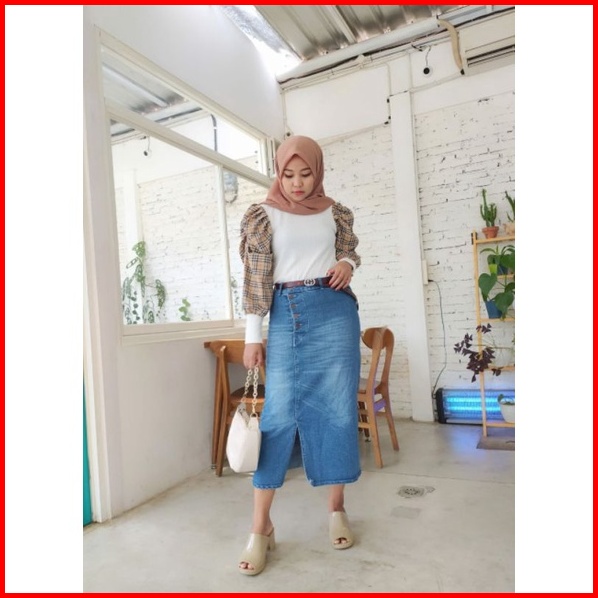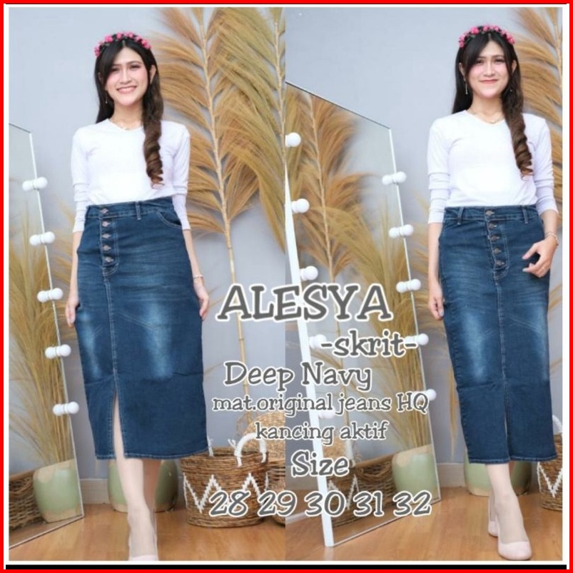 Rok Jeans Alesy - Rok 7 9 Midi Skirt - Rok Jeans 7 9 Midi Skirt Wanita Premium Stretch