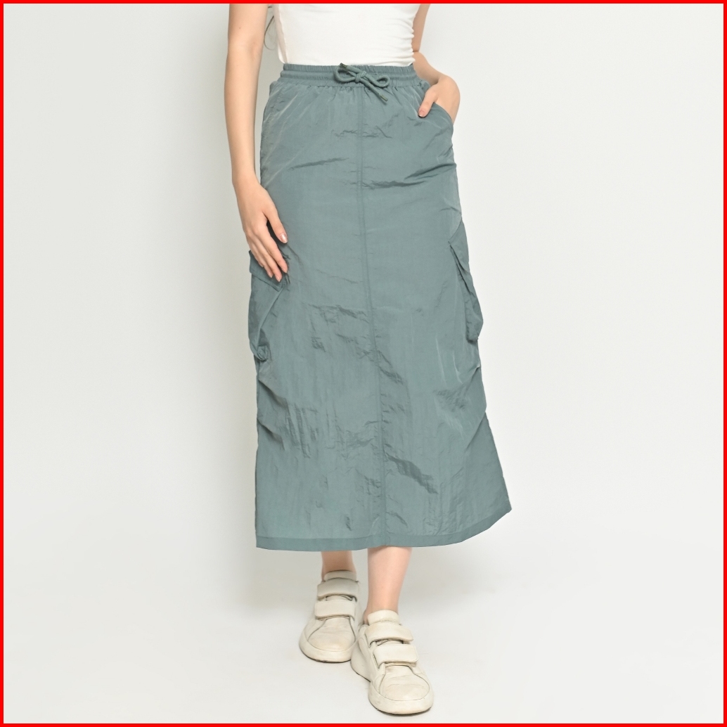 Queentin Rok Kargo Wanita Casual 0401 Katun Parasut Twill Polos Premium
