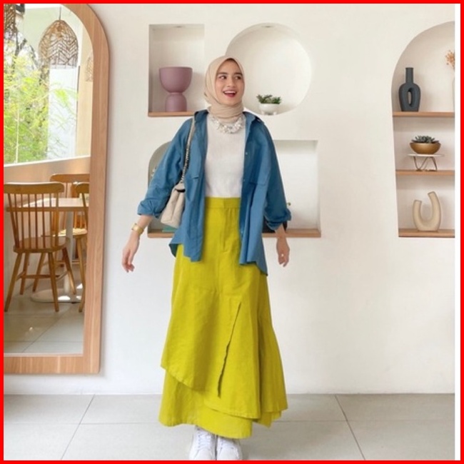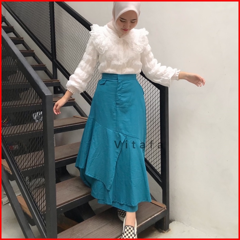 Yumna Skirt Rok Layer Linen Rok A Line By Vitafa Id