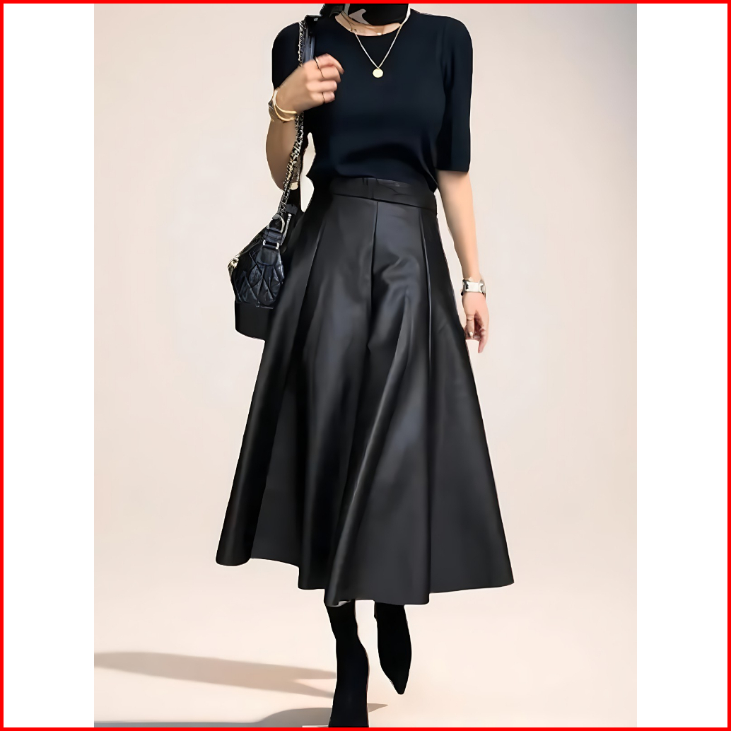 Rok Wanita Hijab 2025 Rok Rempel Kulit Rok Pesta Elegan