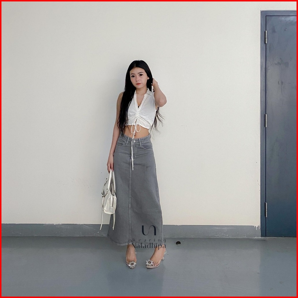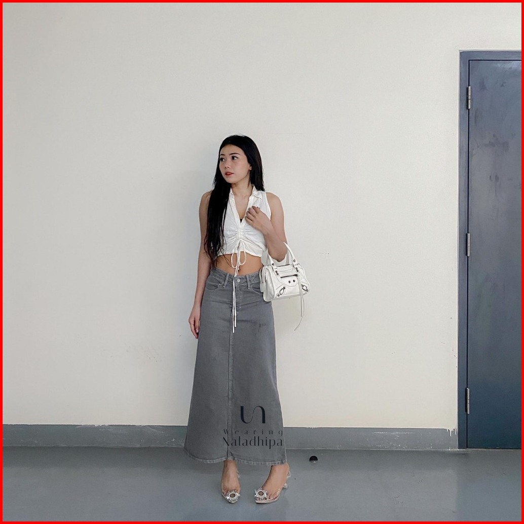 Nara Skirt Grey - Highwaist Jeans Rok Wanita