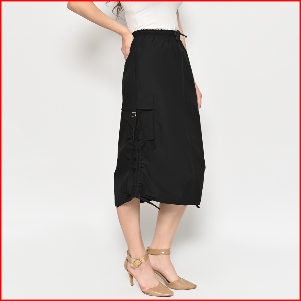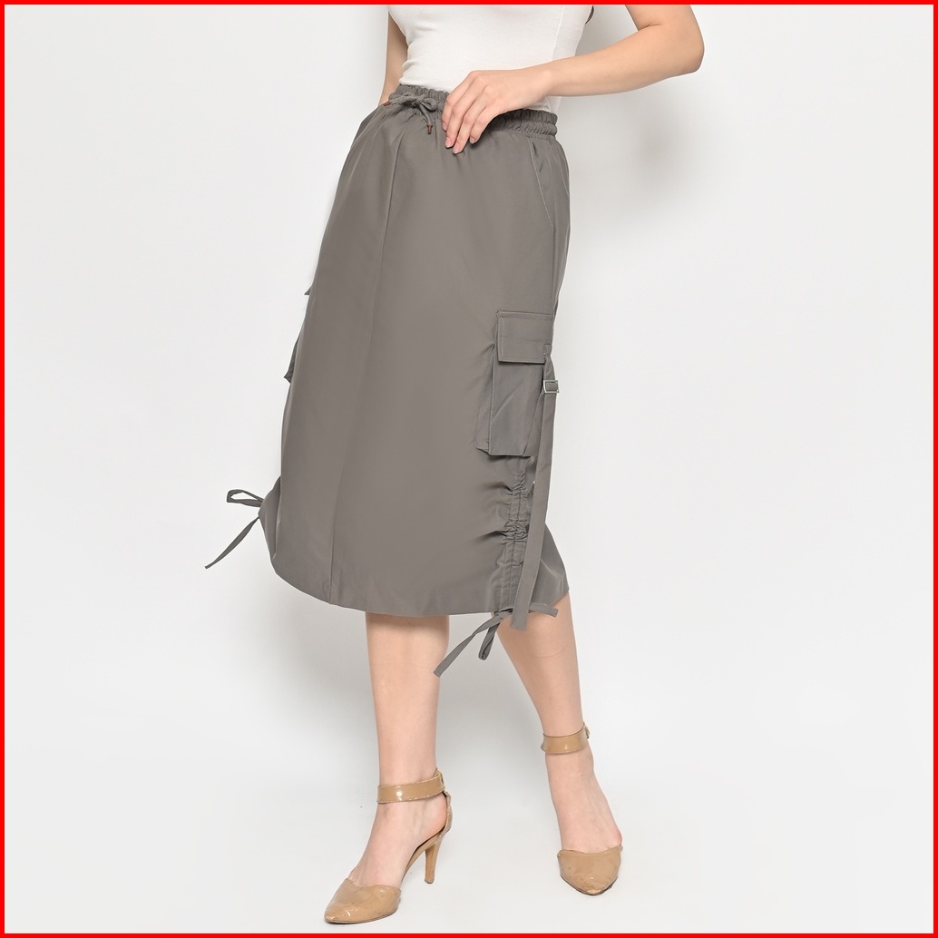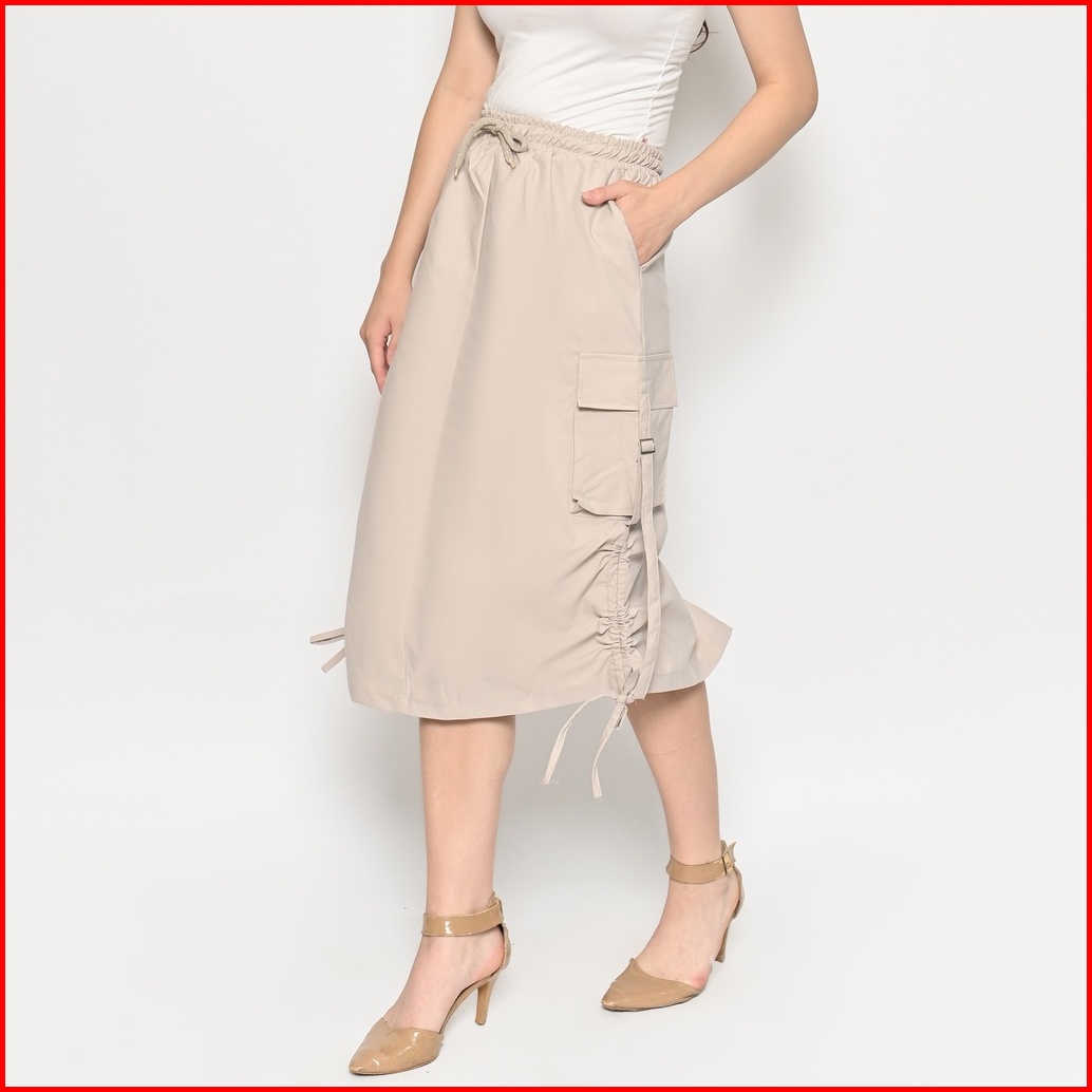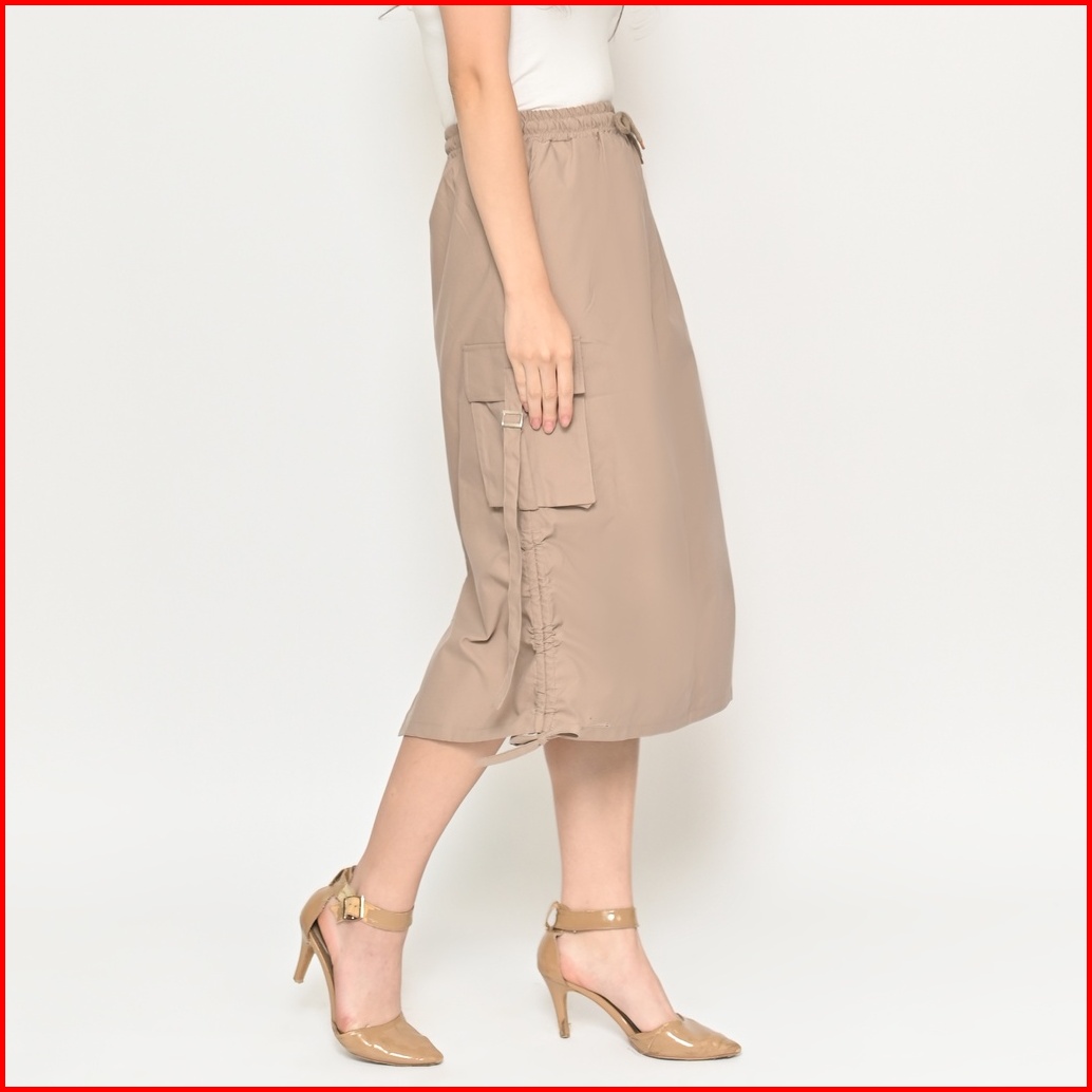 Queentin Rok Kargo Serut Casual Wanita 0389 Katun Chinos Drill Stretch Polos Premium