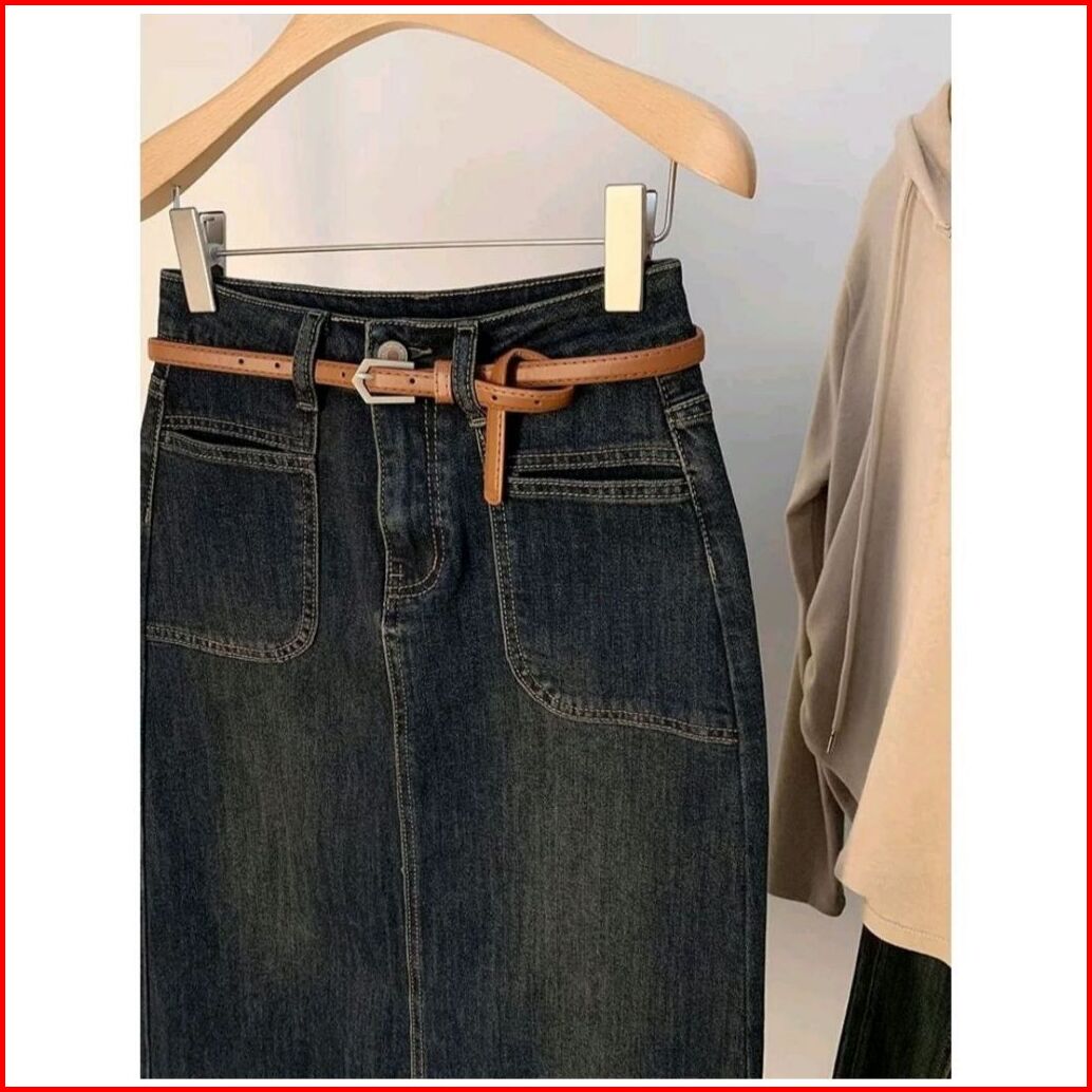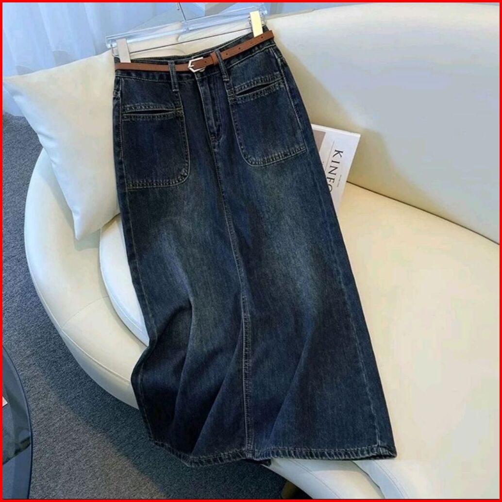 Blue Treads - Chelia Rok Jeans Skirt Panjang Wanita Kancing Karet Belah Belakang