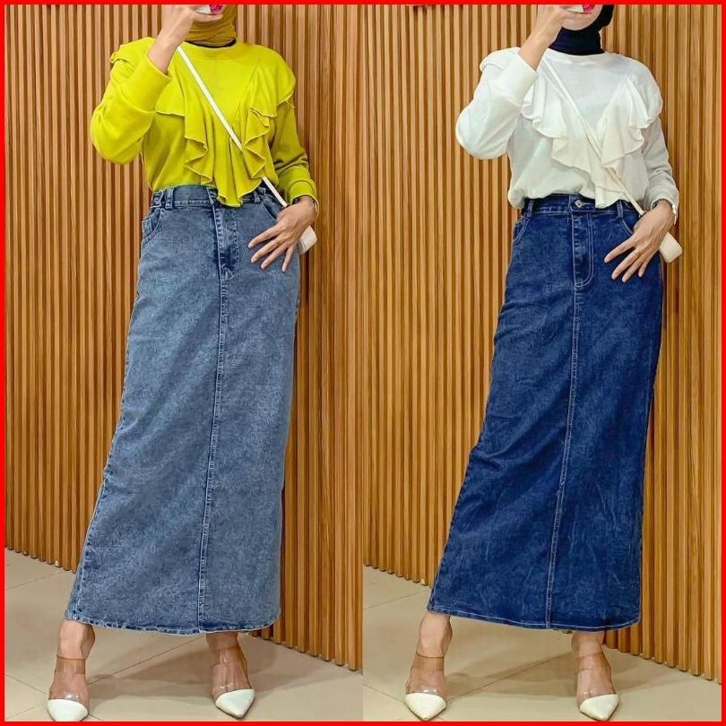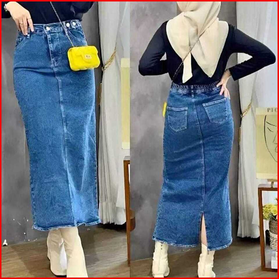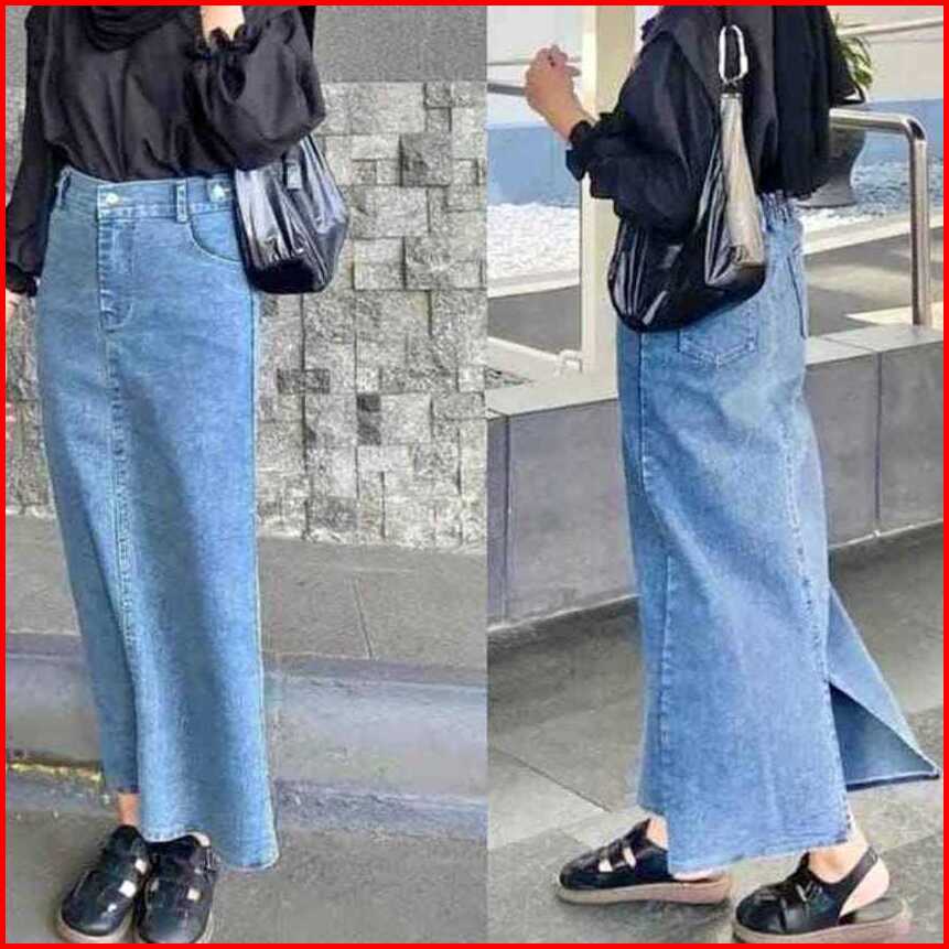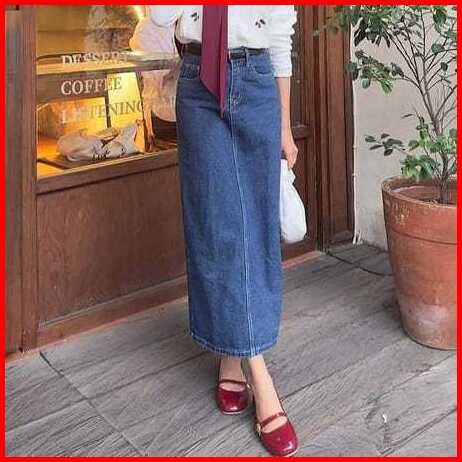 Rok Jeans Wanita Panjang Theana Denim Skirt Highwaist Korean Style