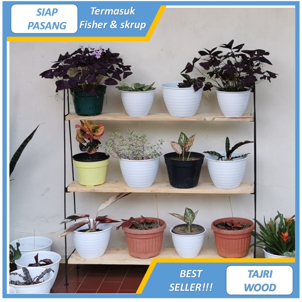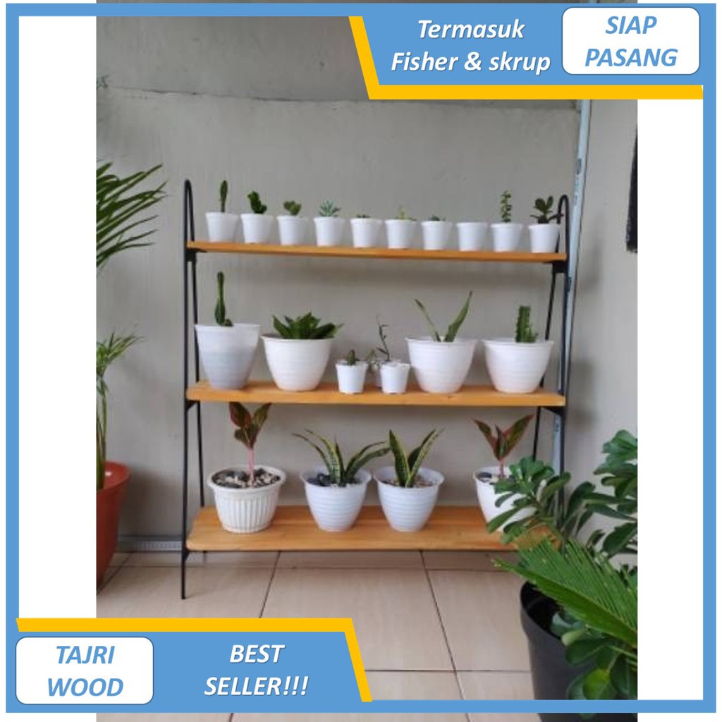 Rak Bunga Tanaman Rumah Besi Kayu 3 Susun Minimalis Serbaguna