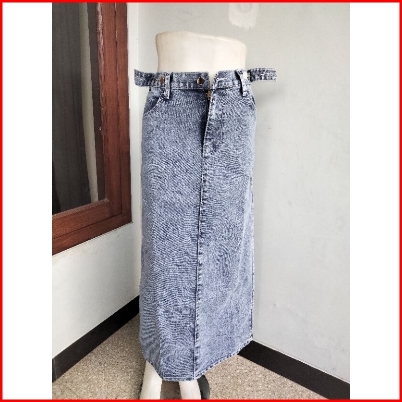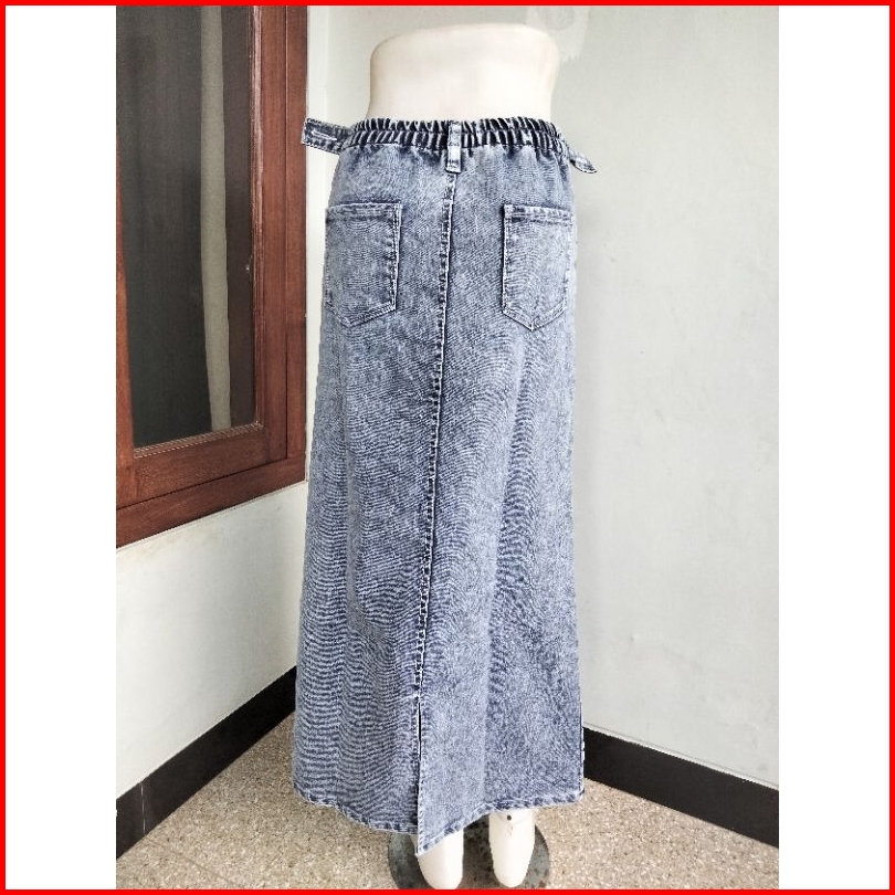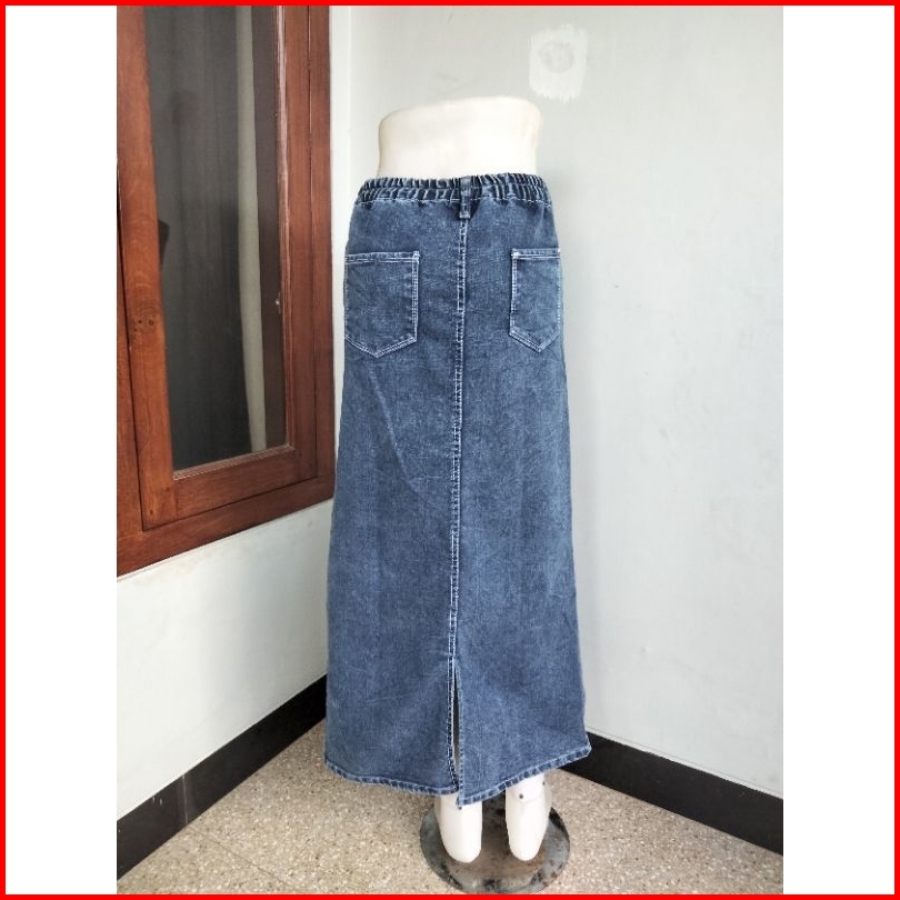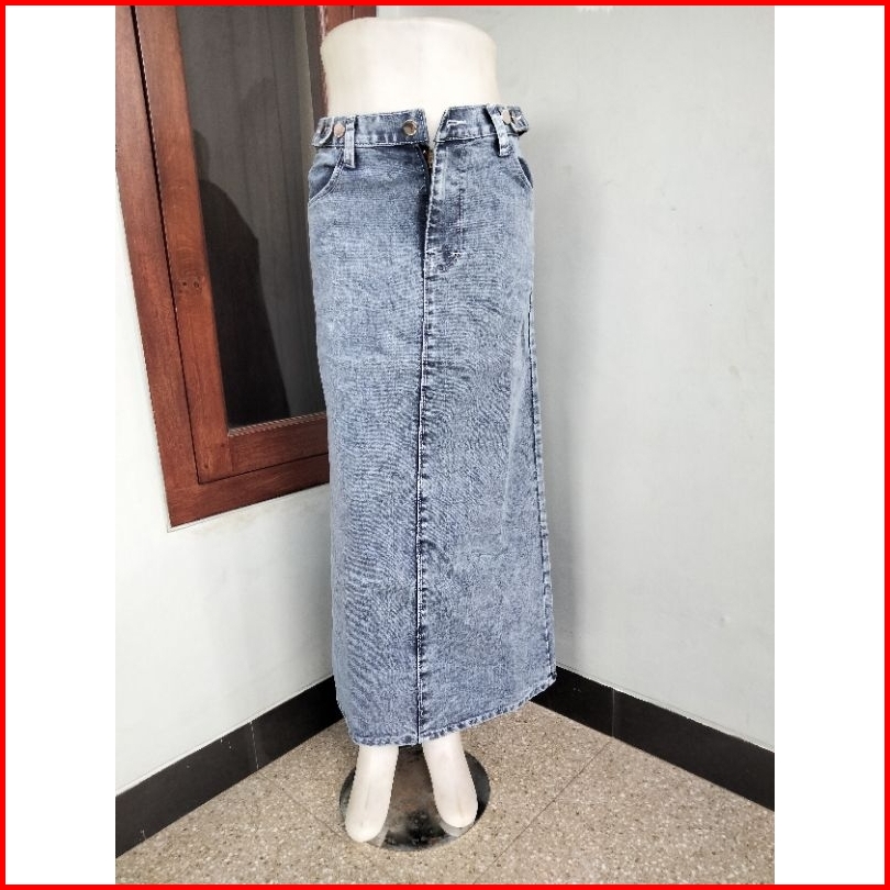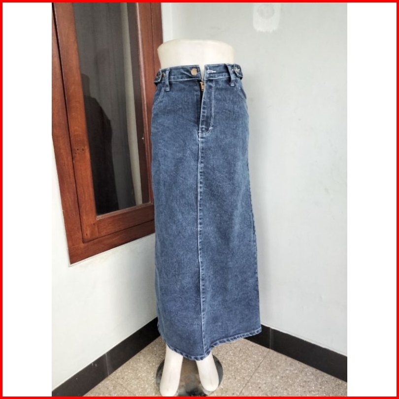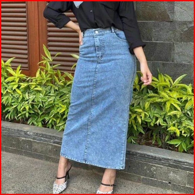 Highwaist Rok Jeans Skirt Theana Wanita Panjang Rok Jeans Span Belah Belakang