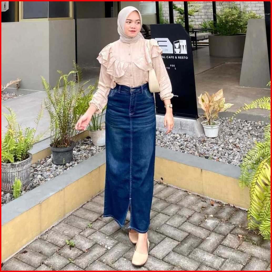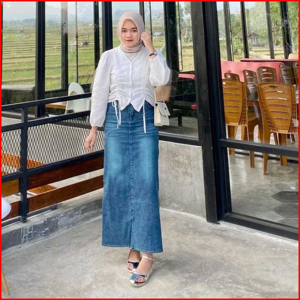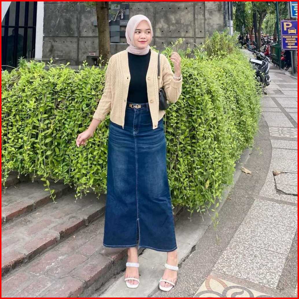 Rok Span Jeans Skirt Super Jumbo Belah Depan High Waist Korean Style Kekinian Terbaru 2024 Kayla Kdz