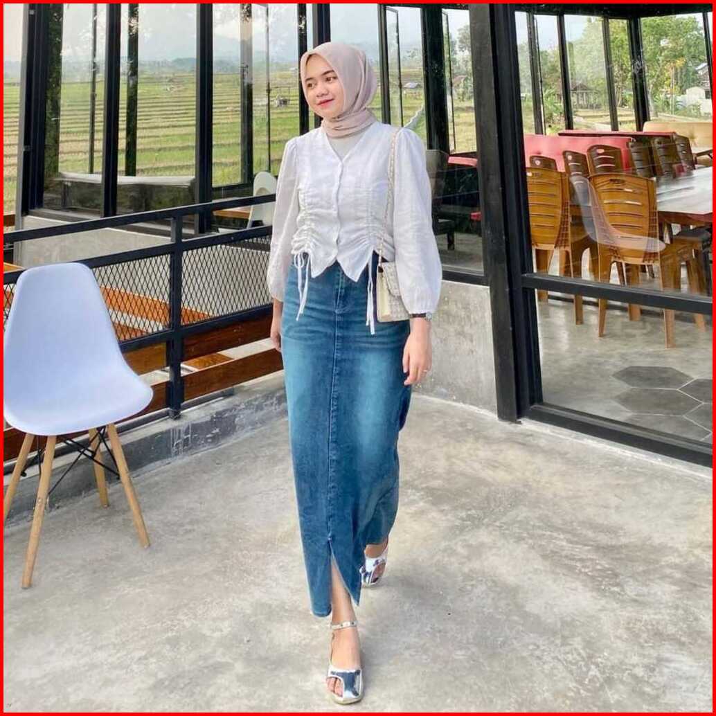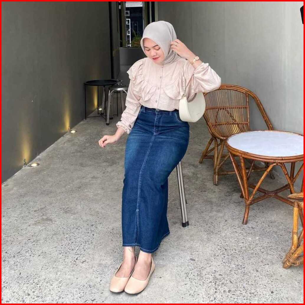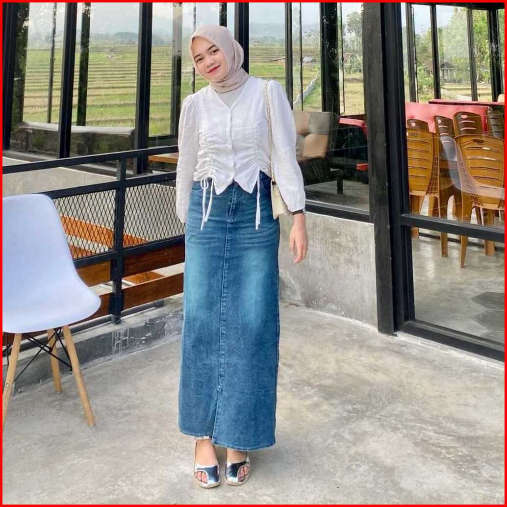 Rok Span Jeans Skirt Super Jumbo Belah Depan High Waist Korean Style Kekinian Terbaru 2024 Kayla Kdz
