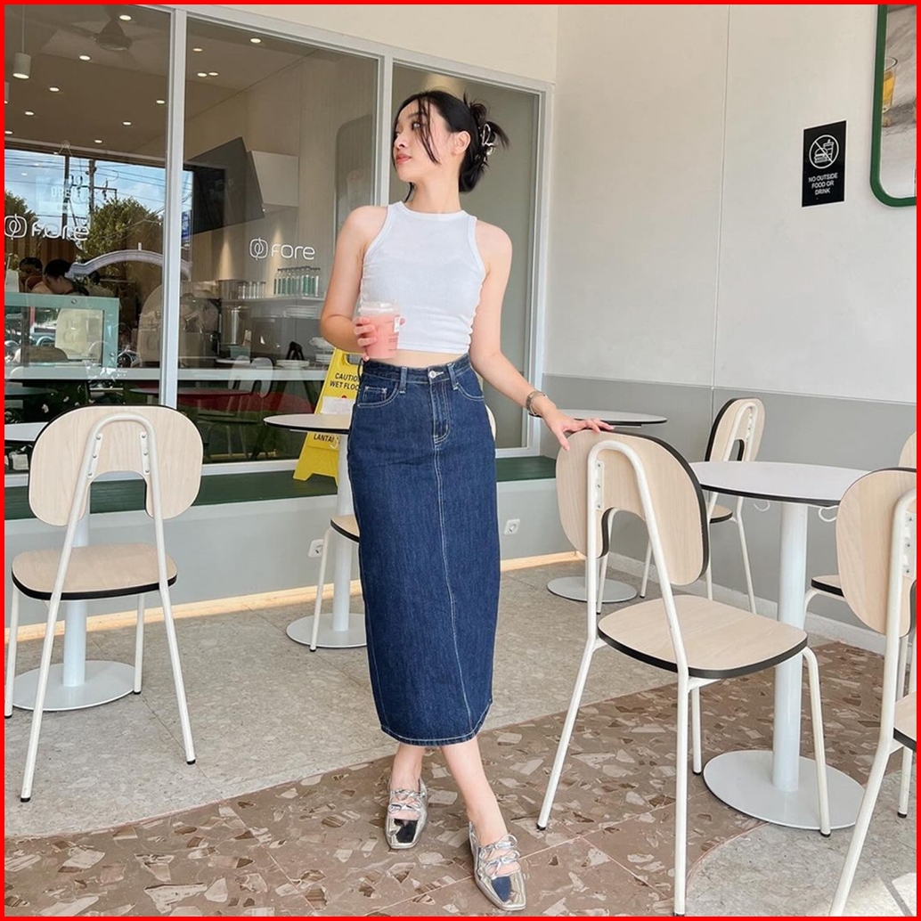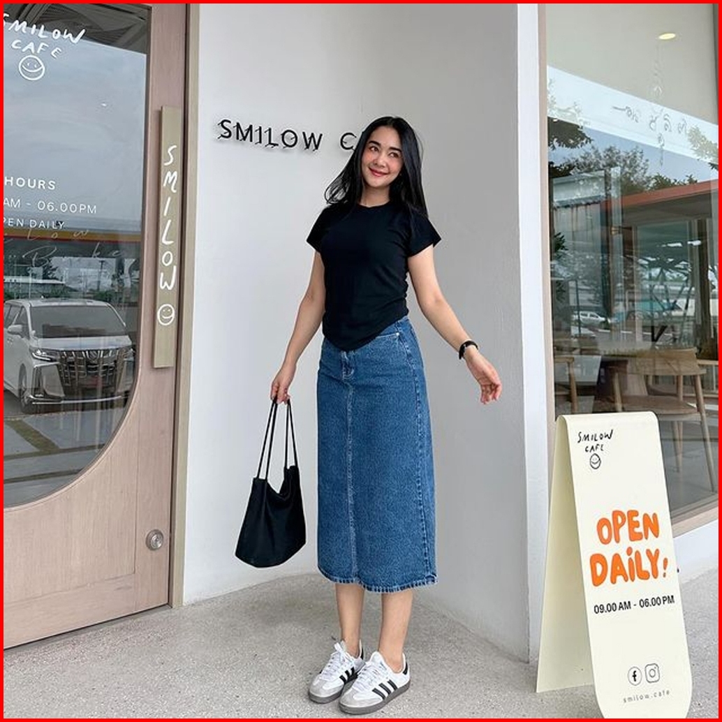 Z-two Zain Skirt Rok Jeans 7 9 Lipat Melar Belah Belakang A Line Hightwais Koeran Style Kekinian
