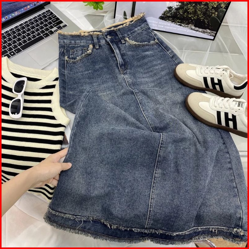 Rok Jennie Jeans Span Panjang Maxi Skirt Rok Wanita Cewek Terbaru Casual Rok Denim Rawis Highwaist