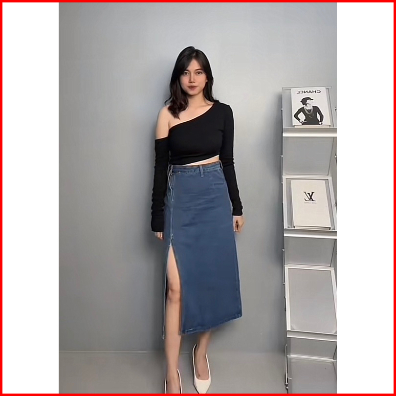 Rok Jeans Highwaist A Line Korean Style Rok Jeans Highwaist Korean Style