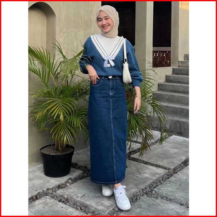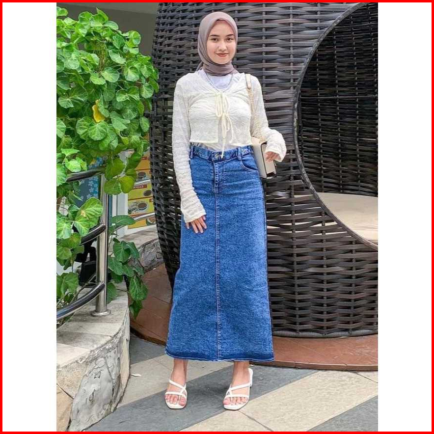Az Rok Jeans Skirt Theana Rok Jeans Panjang Wanita Korean Style