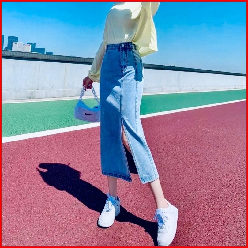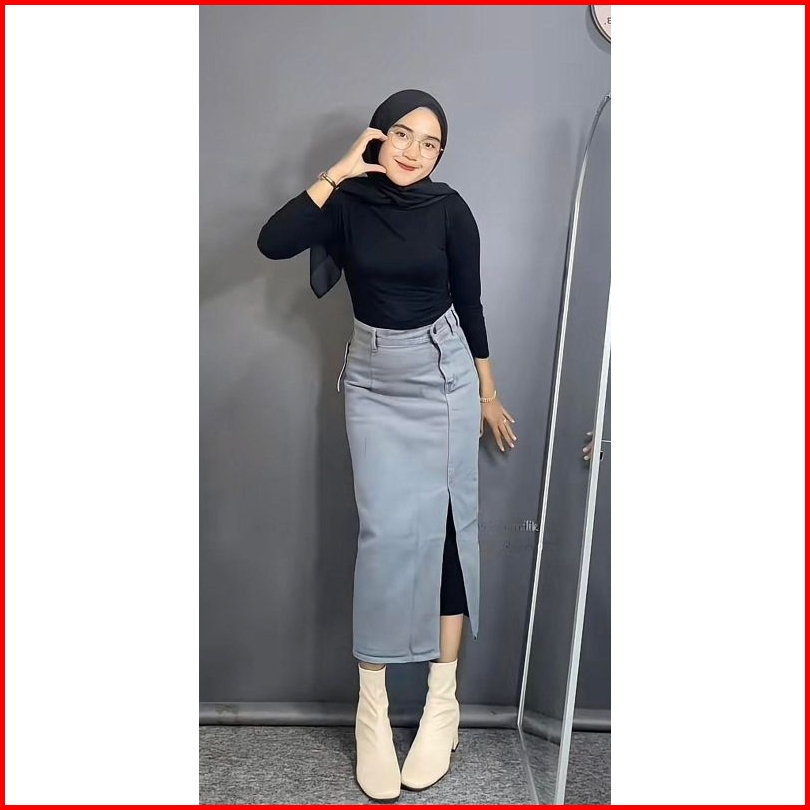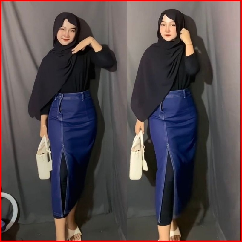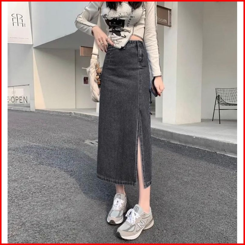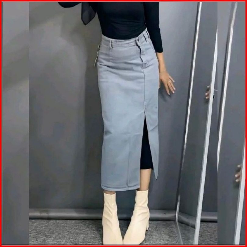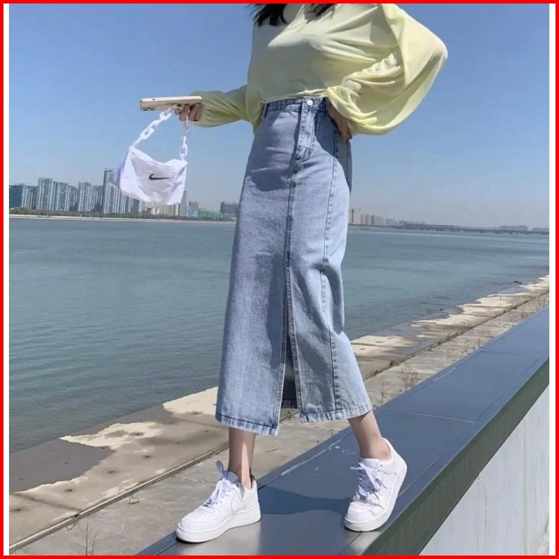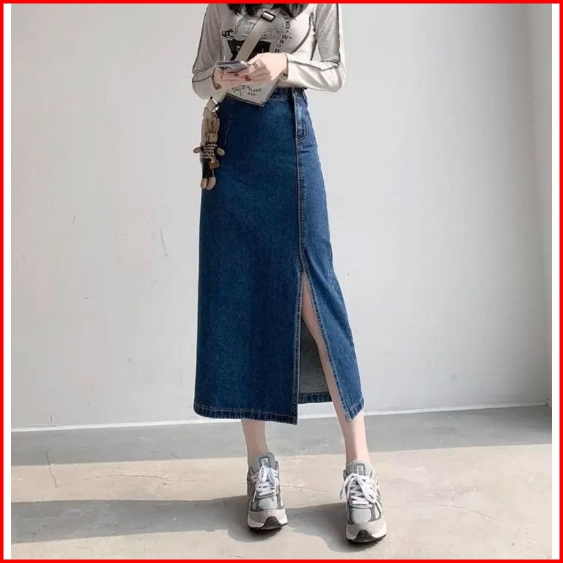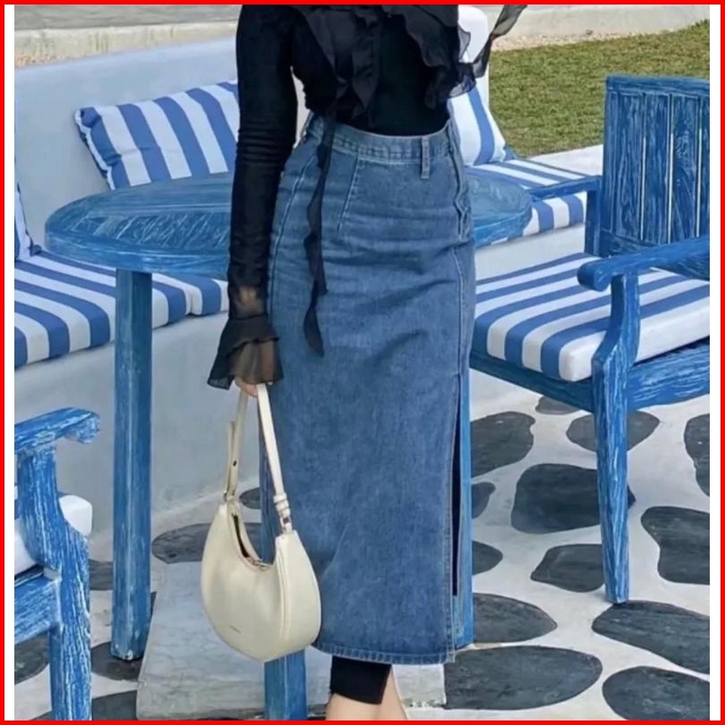 Rok Jeans Belah Samping Highwaist Premium Rok Jeans Wanita Highwaist