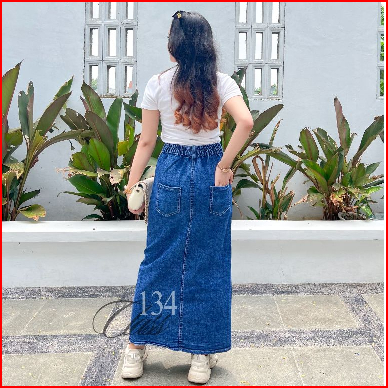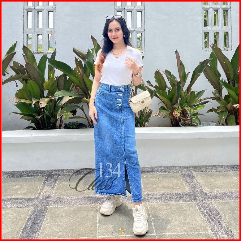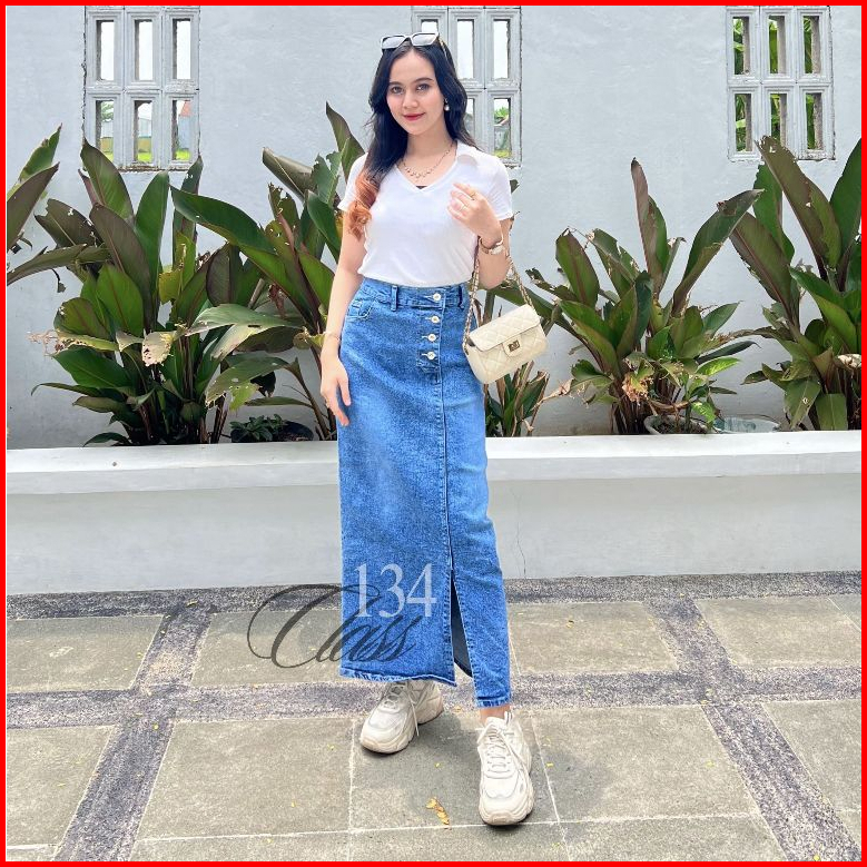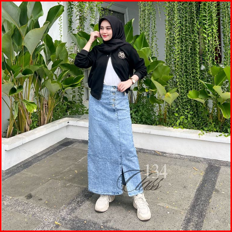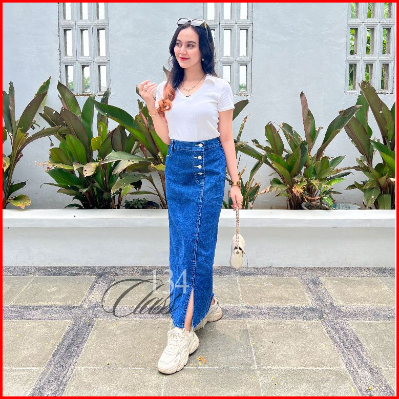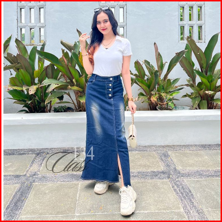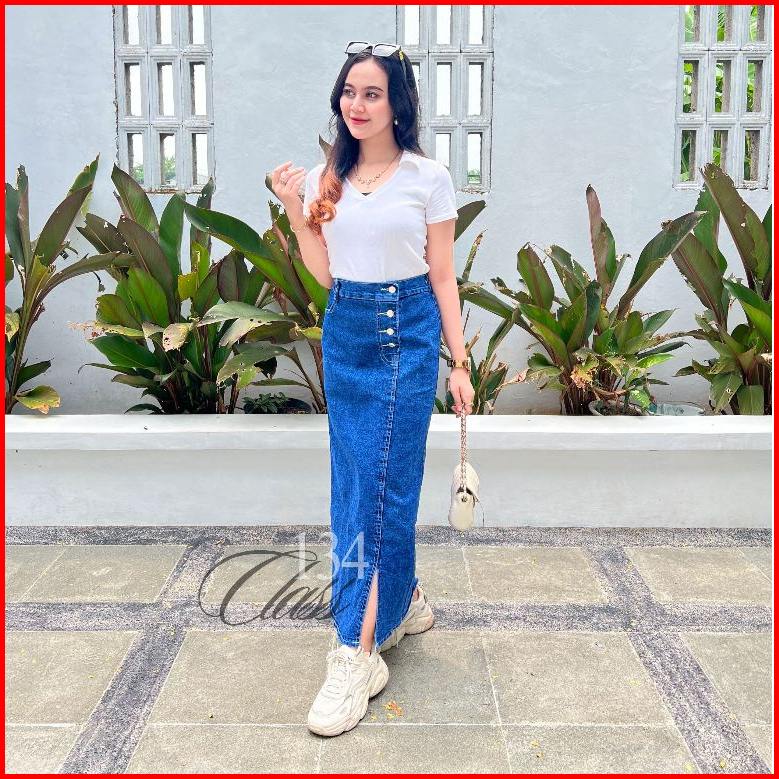 Rok Jeans Haighwaist Belah Samping Korean Style Rok A-line Rok Rebecca Jeans