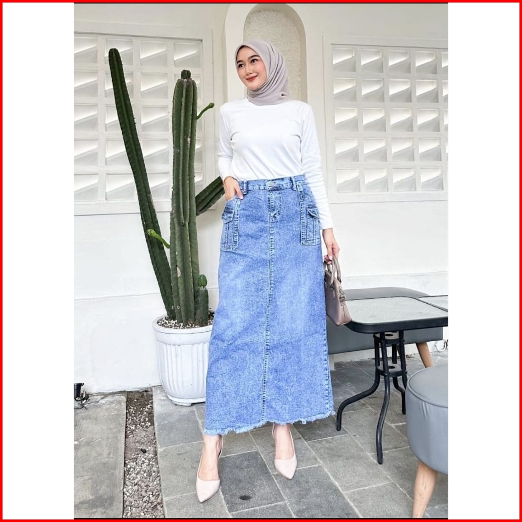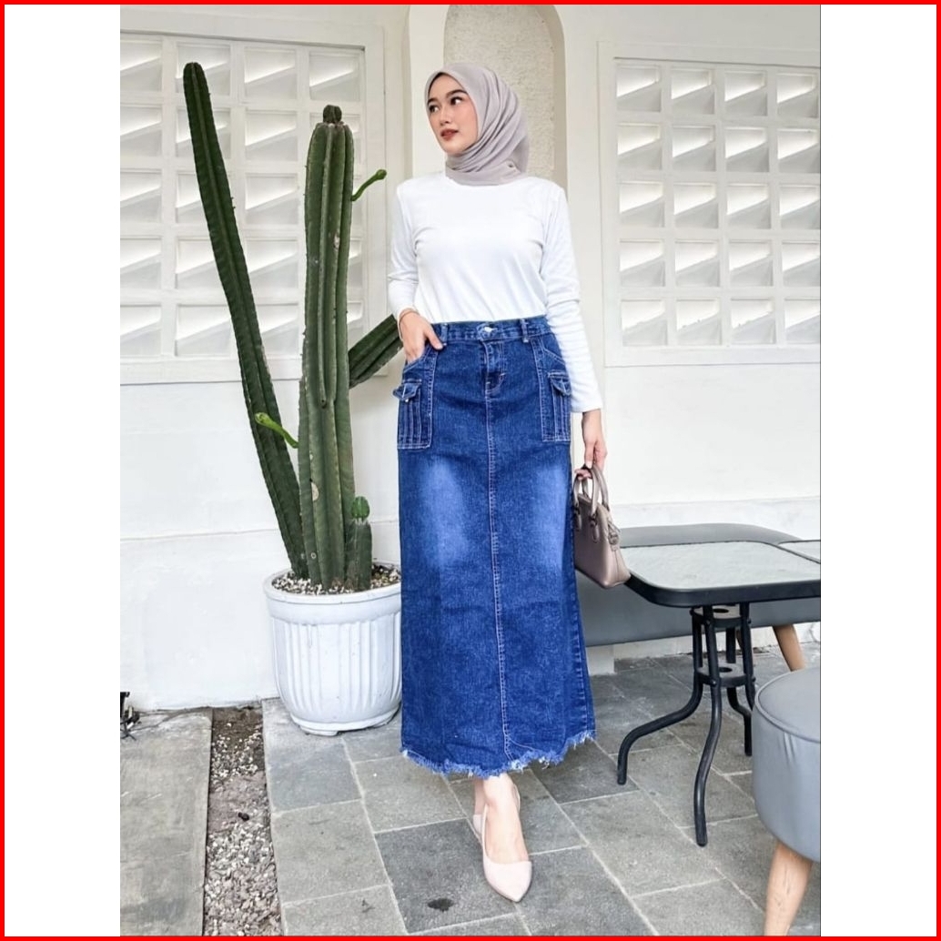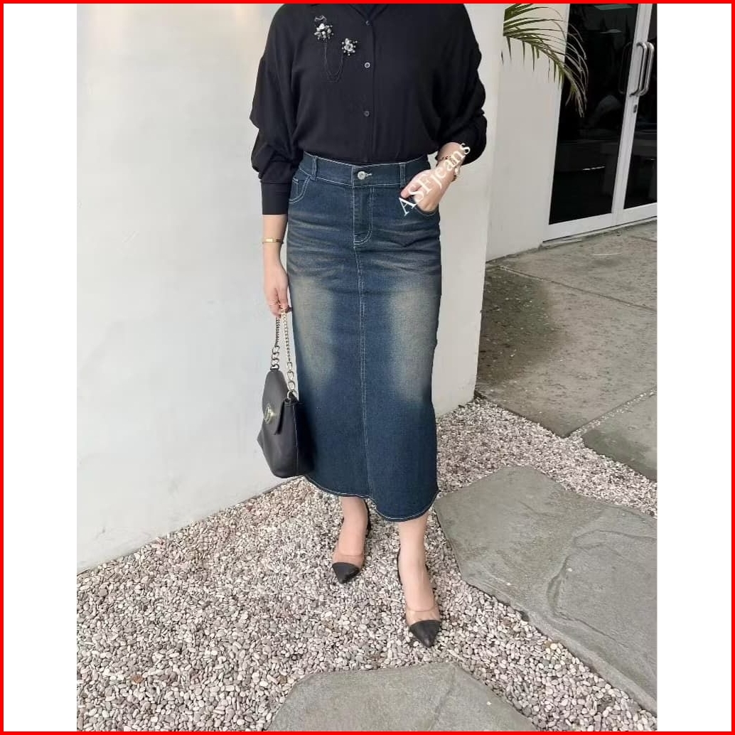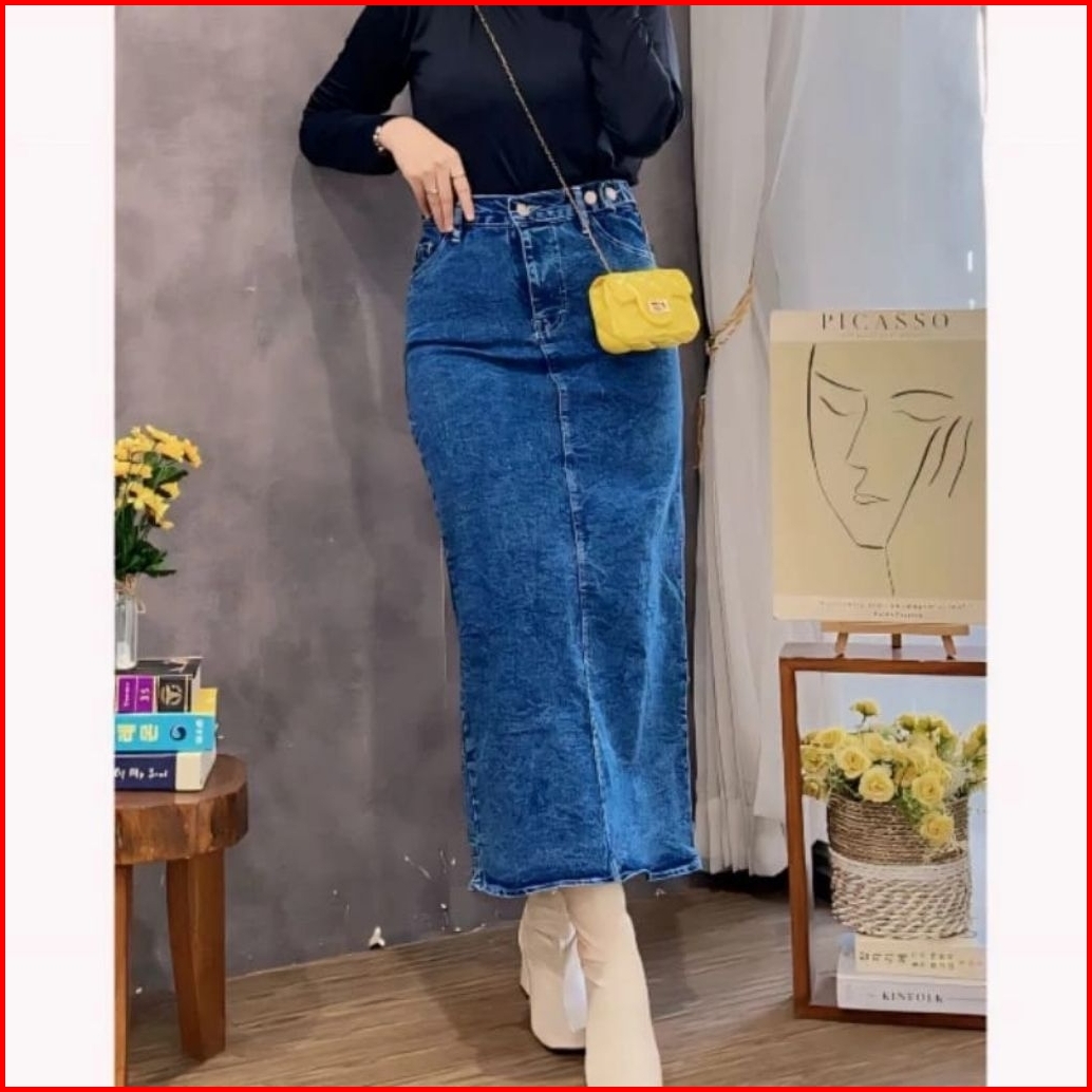Moren Wighwaist Rok Jeans Rawis Belah Belakang