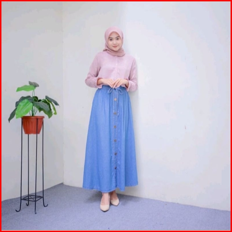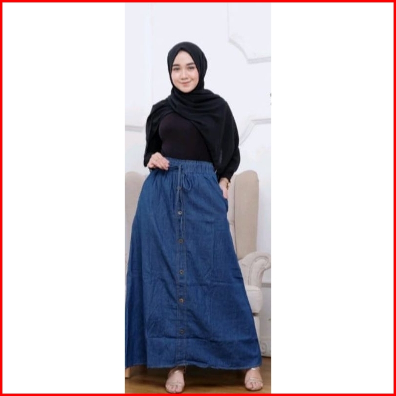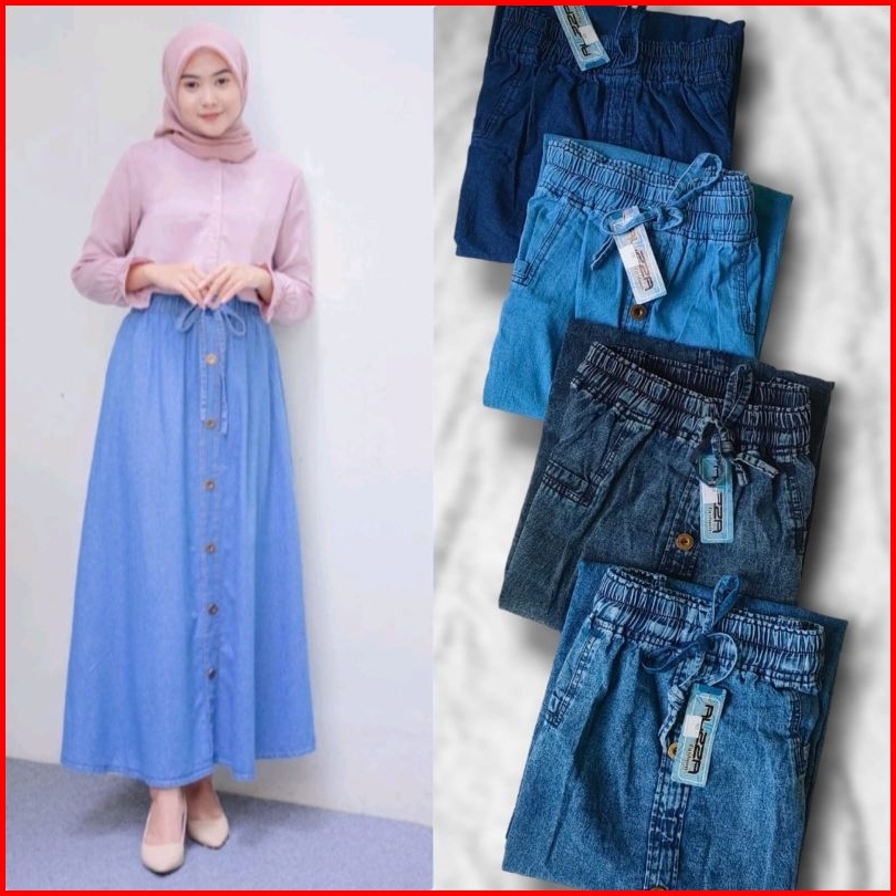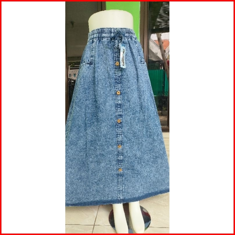 Rok Jeans Panjang Wanita Rok Wanita Jeans Snow Wash Model A Bahan Soft Jeans