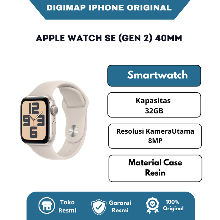 Apple Watch Se (Gen 2) 40mm Gps Aluminium Case With Starlight Sport Band S/M Ibox Original Official Store