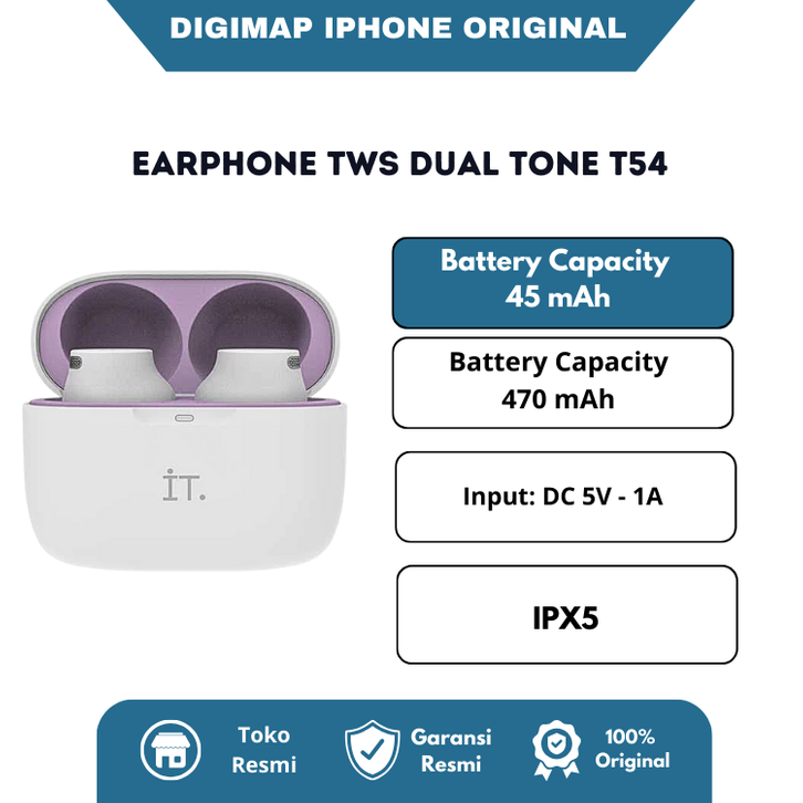 Earphone Bluetooth IT Tunebuds Tws Dual Tone T54 Lilac Wireless Usb C Anti Air Ibox Original Official Store
