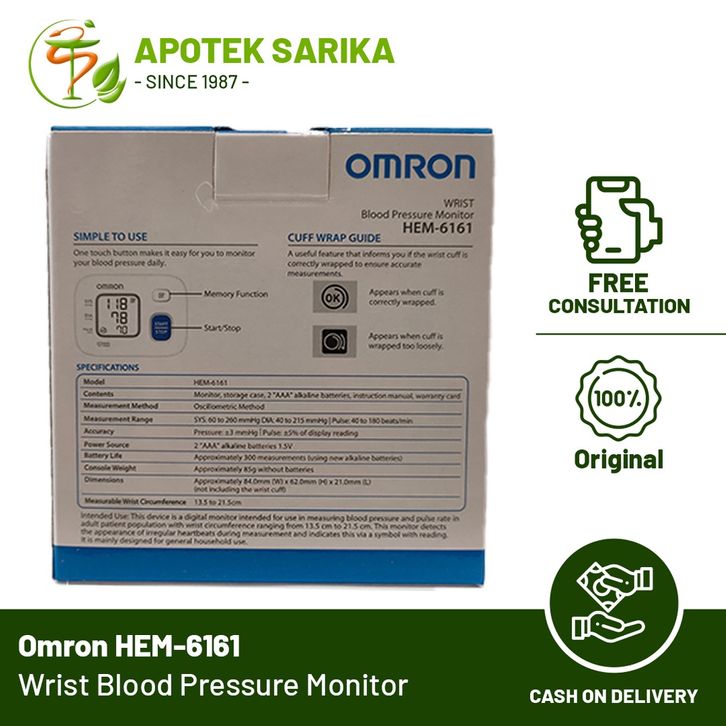 OMRON WRIST BLOOD PRESSURE MONITOR / ALAT TENSIMETER PERGELANGAN TANGAN / TENSI METER HEM-6161