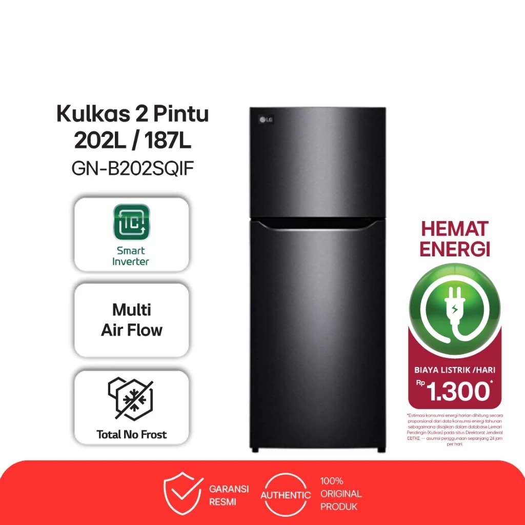 Kulkas 2 Pintu Lg Jumbo Door 202L - 187L Top Freezer Fridge in Dark Graphite Steel | GN-B202SQIF Kulkas Termurah