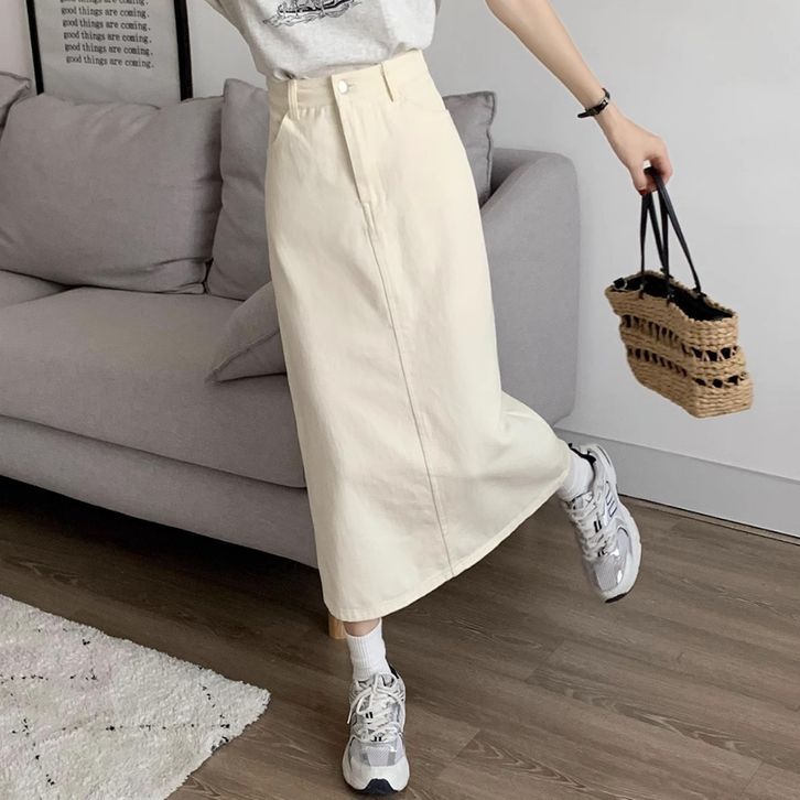 Rok Jeans Warna Hitam Biru Muda Rok Jeans Cewek Denim Bawahan Wanita Kekinian Rok Midi Wanita Korea Fashion Style