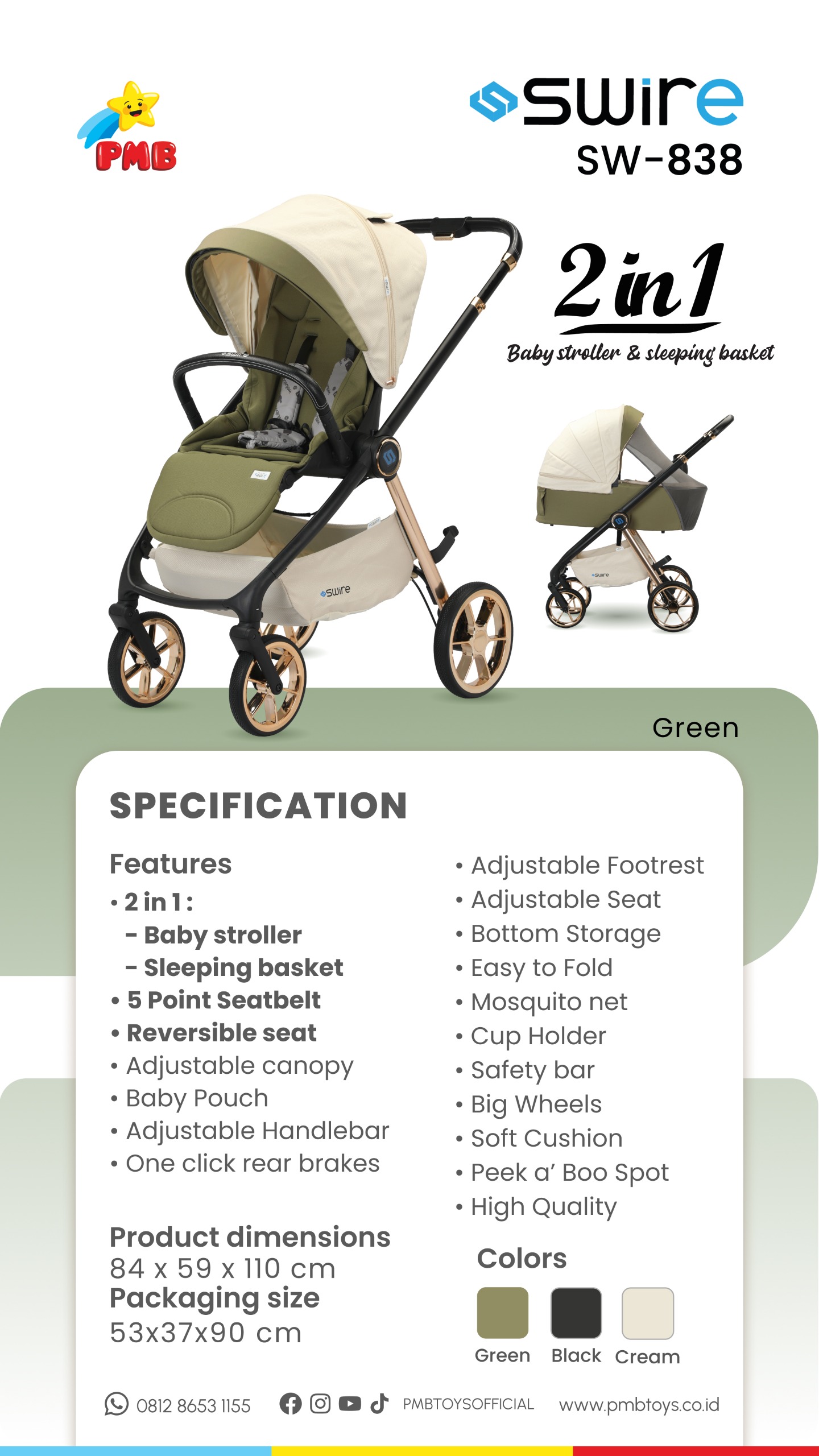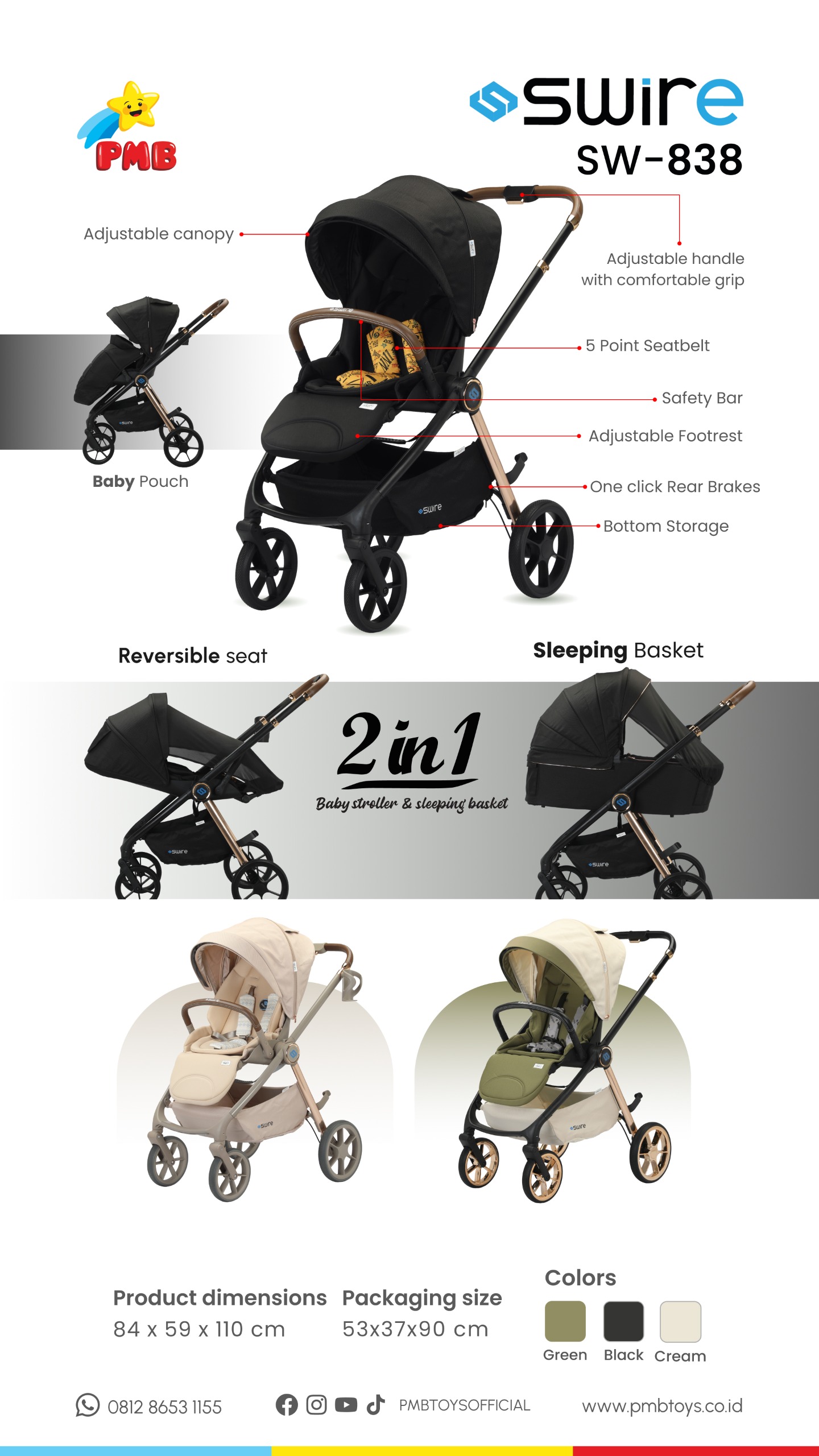 STROLLER BAYI SW 838 2IN1 SWIRE STROLLER – SW838 2in1 PMB TOYS