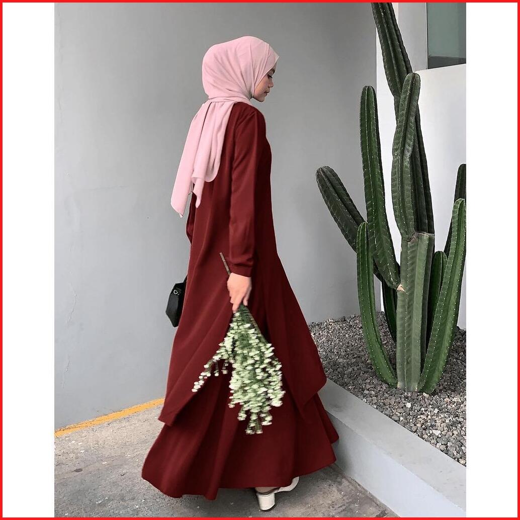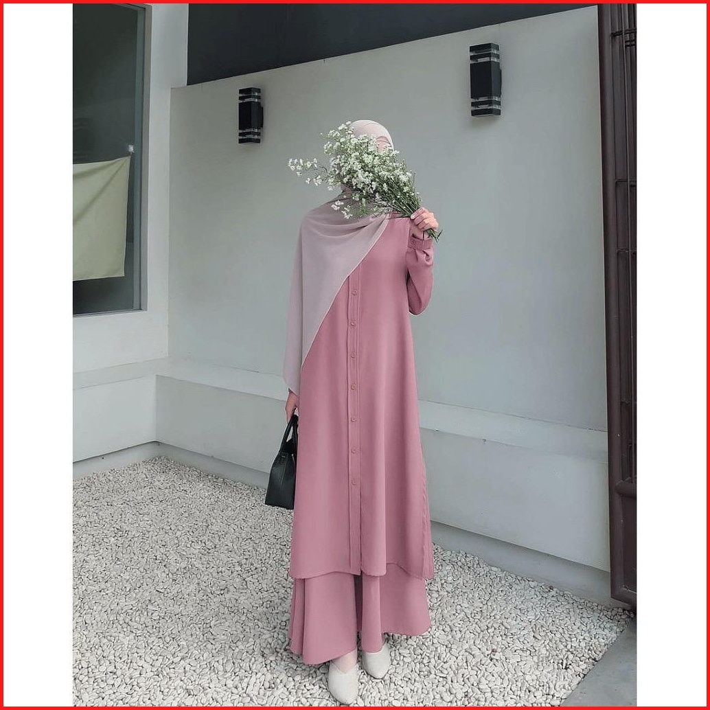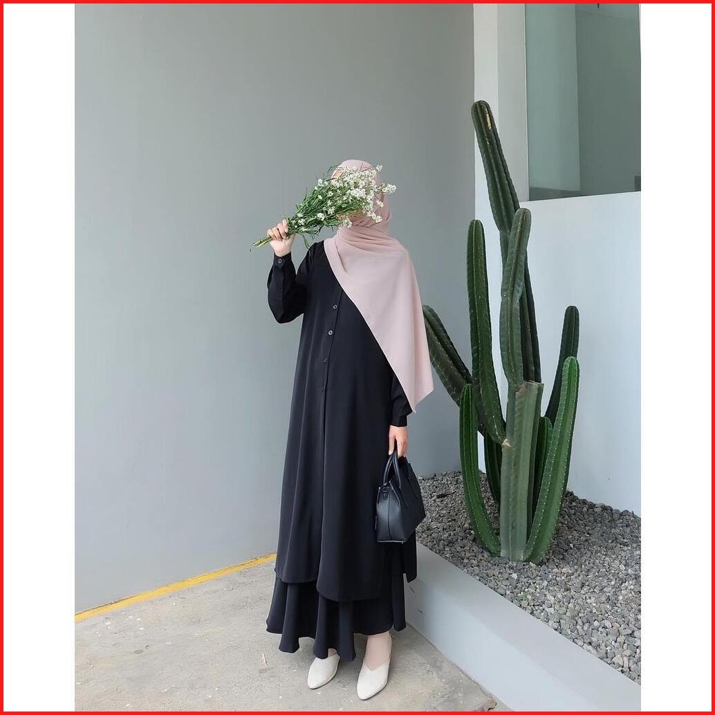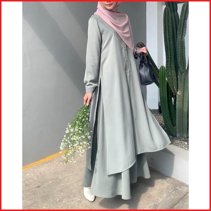 One Set Rok Tunik Hanum Busui Wanita Muslim Jumbo Bahan Itty Creepe Terbaru Size M L Xl Xxl