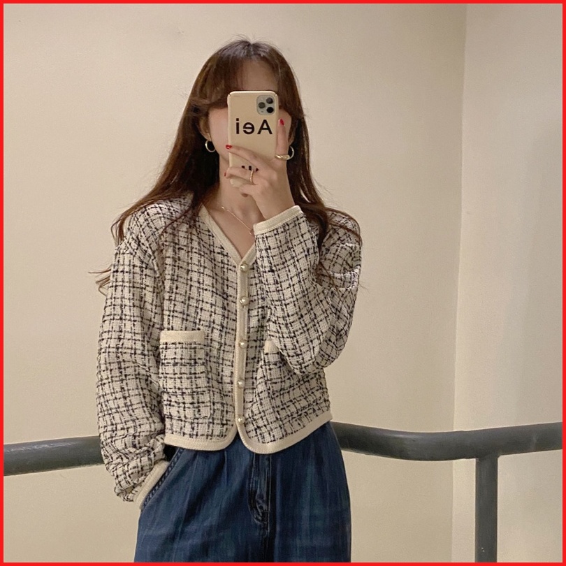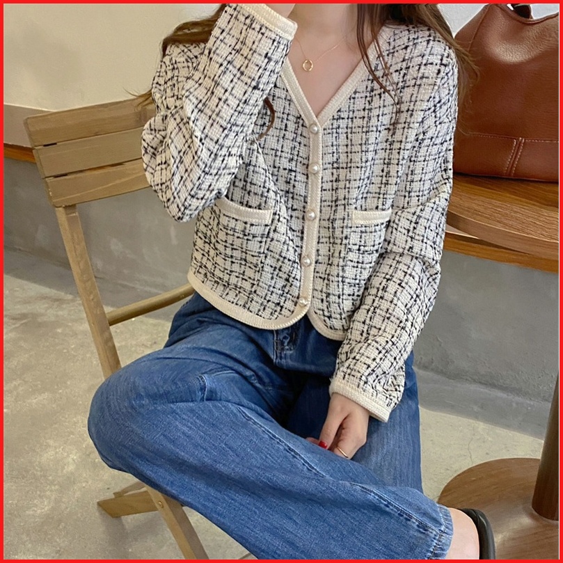 Korean Style V-neck Outerwear Pakaian Wanita Retro Jaket Wanita Import Jaket Jeans Crop Oversize