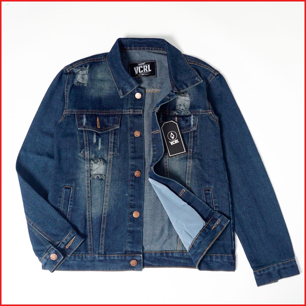 Vcrl Jaket Jeans Denim Shandwash Blue Bahan Tebal Premium Quality