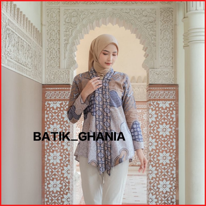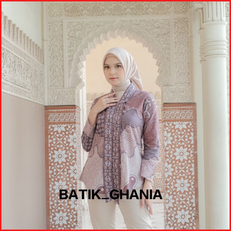 Blouse Batik Wanita Modern Atasan Batik Kerja Baju Batik Wanita Motif Syakira