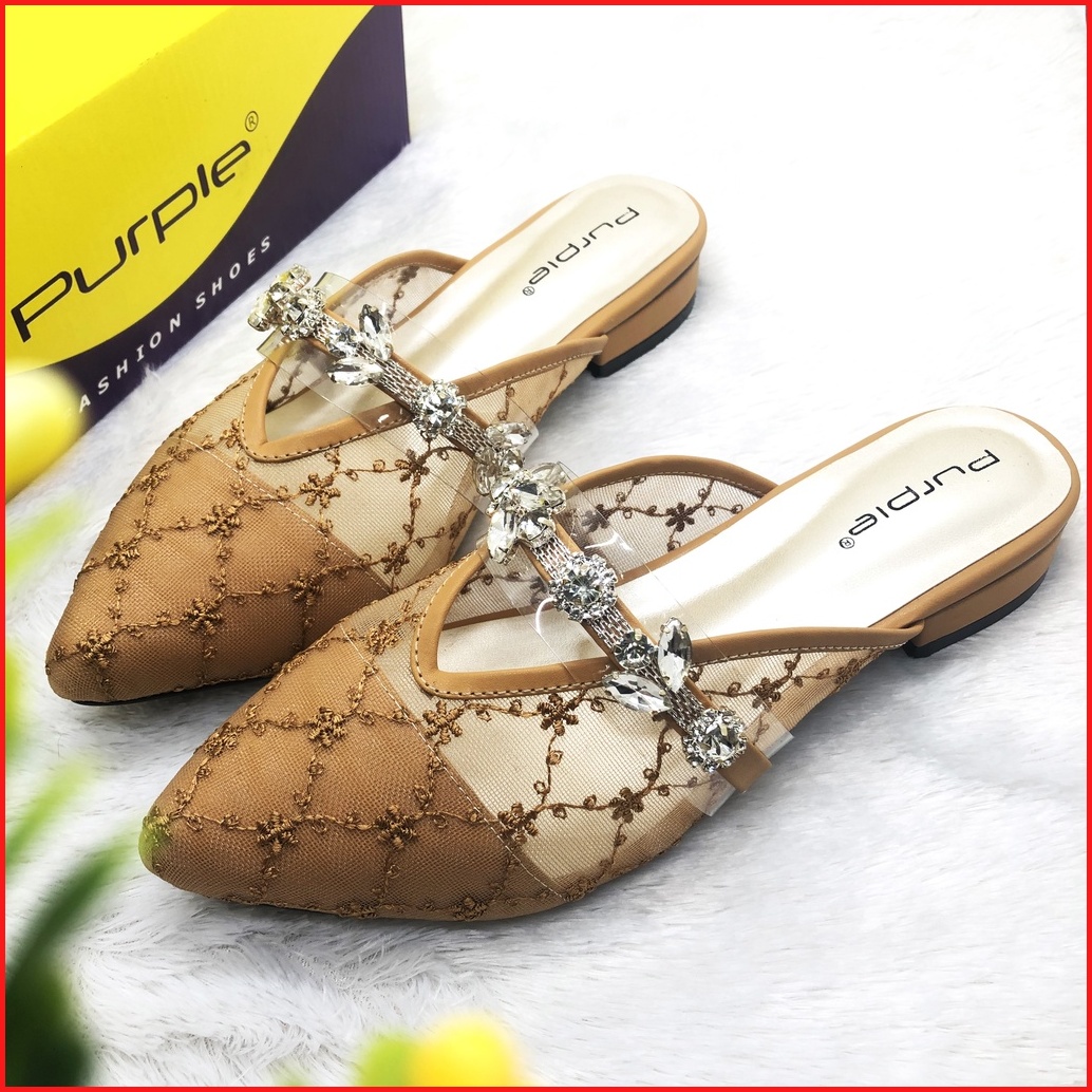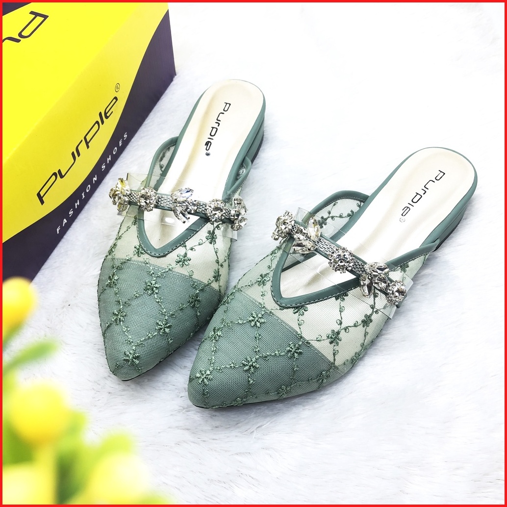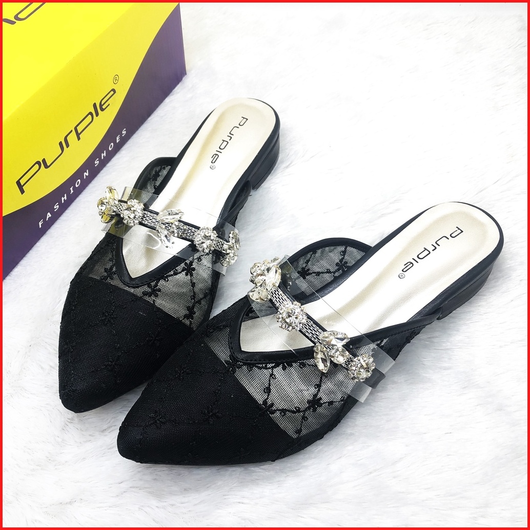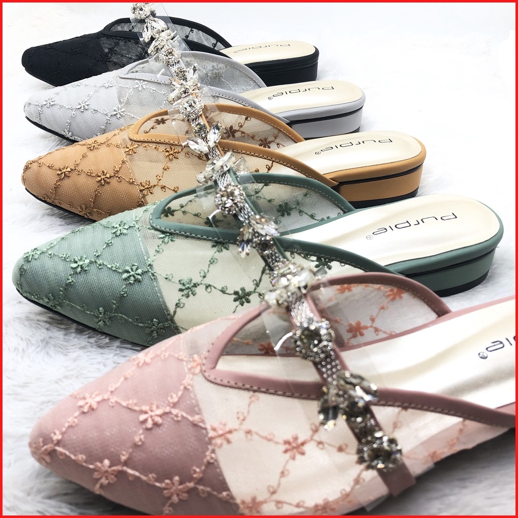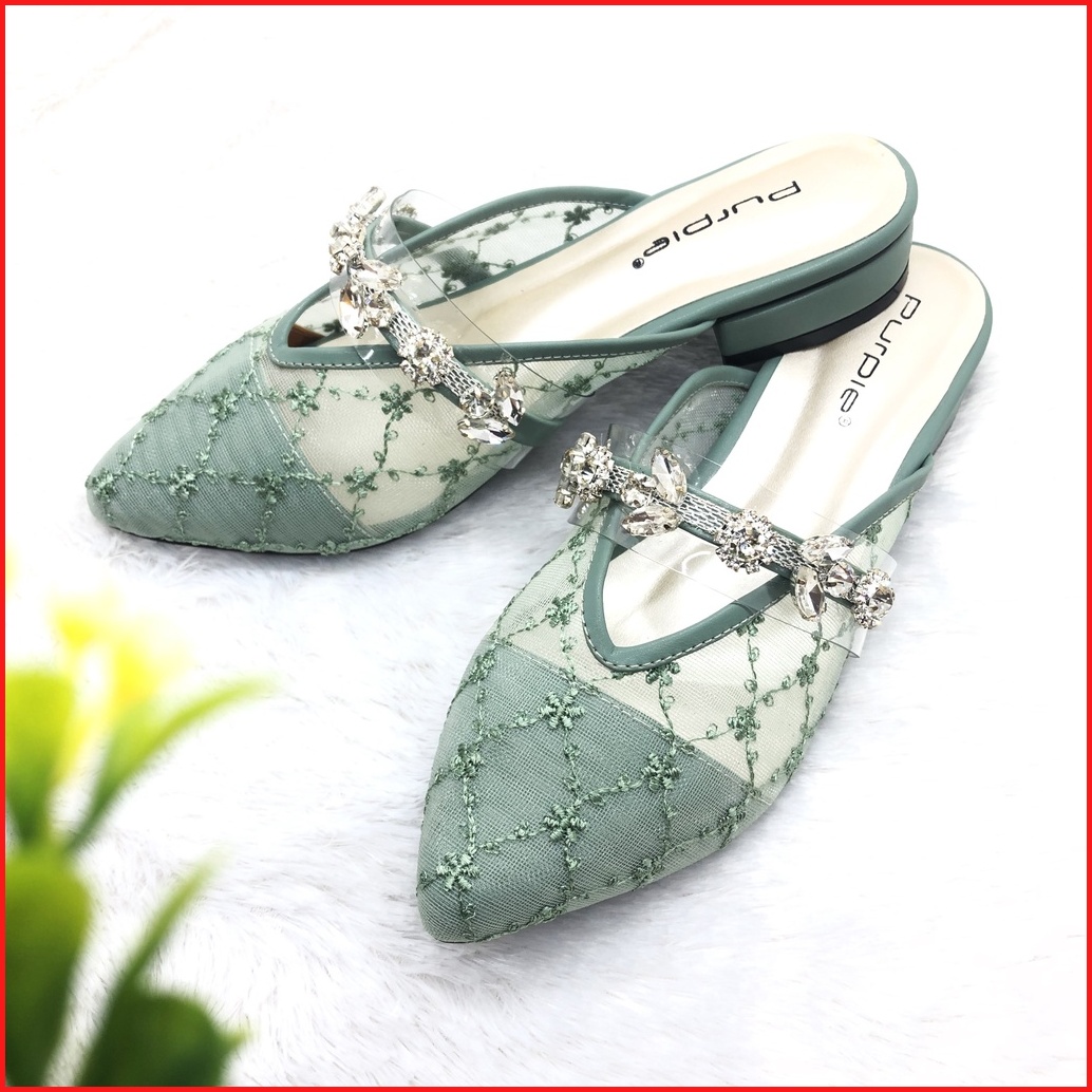 Sandal Brukat Flat Shoes Wedding Wanita Valerina Series Purple Original Big Size Lokal