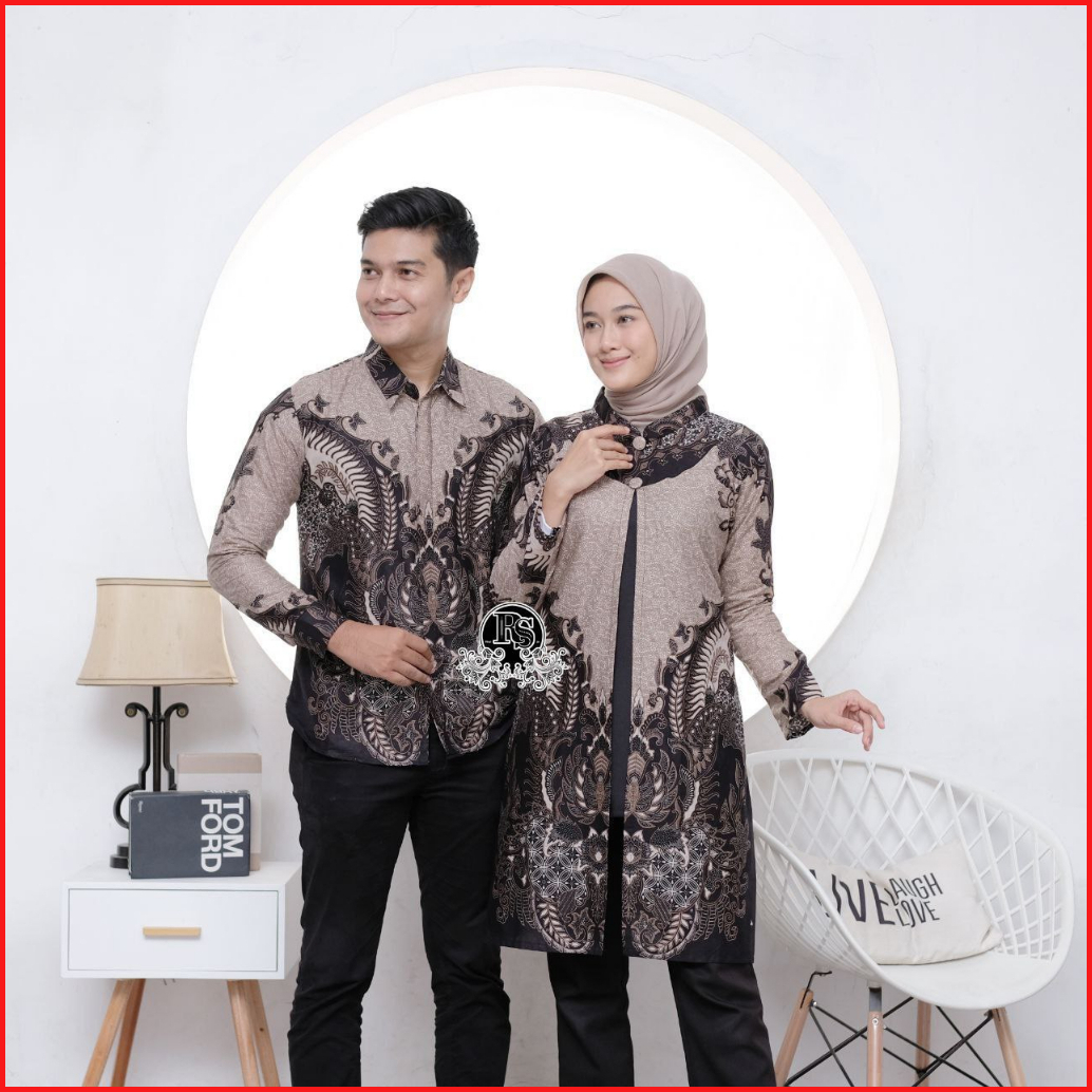 Batik Couple Batiksugihwaras - Baju Batik Couple Tunik Saku Samping Kemeja Lengan Panjang M L Xl Xxl Jumbo Ready Seragam