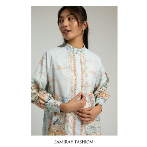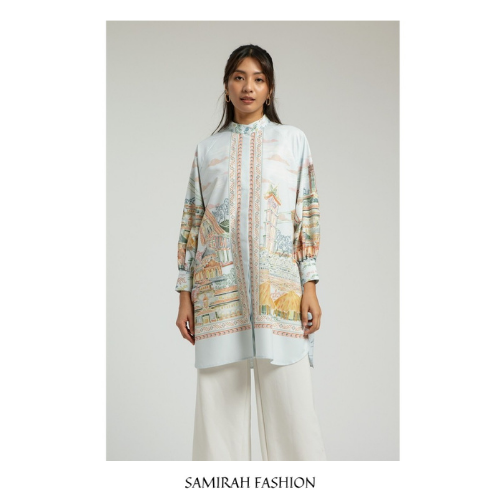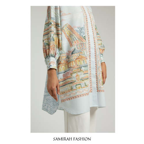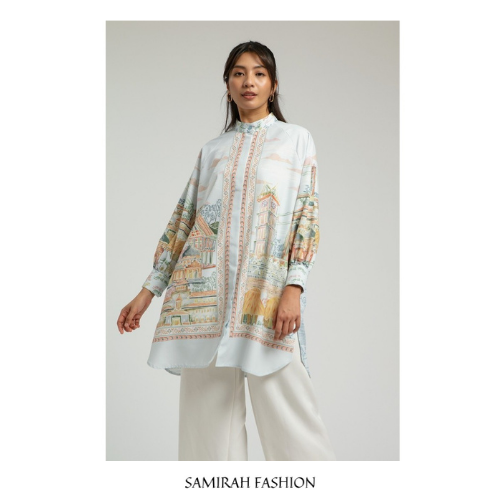 Baju Blouse Muslim Rinjani Top Blue & White Heart Troops