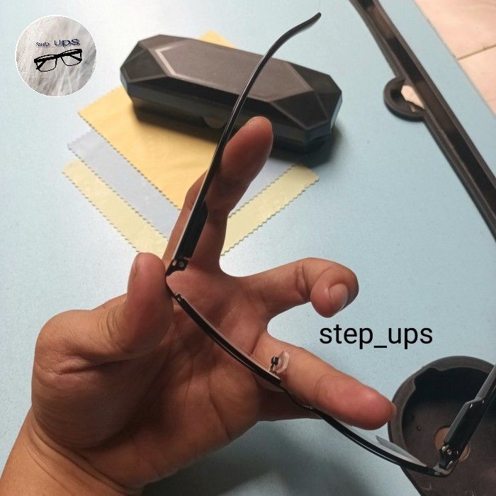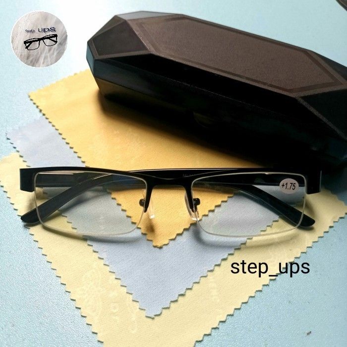 kacamata baca plus semi rimless lensa blue light blocking engsel pegas