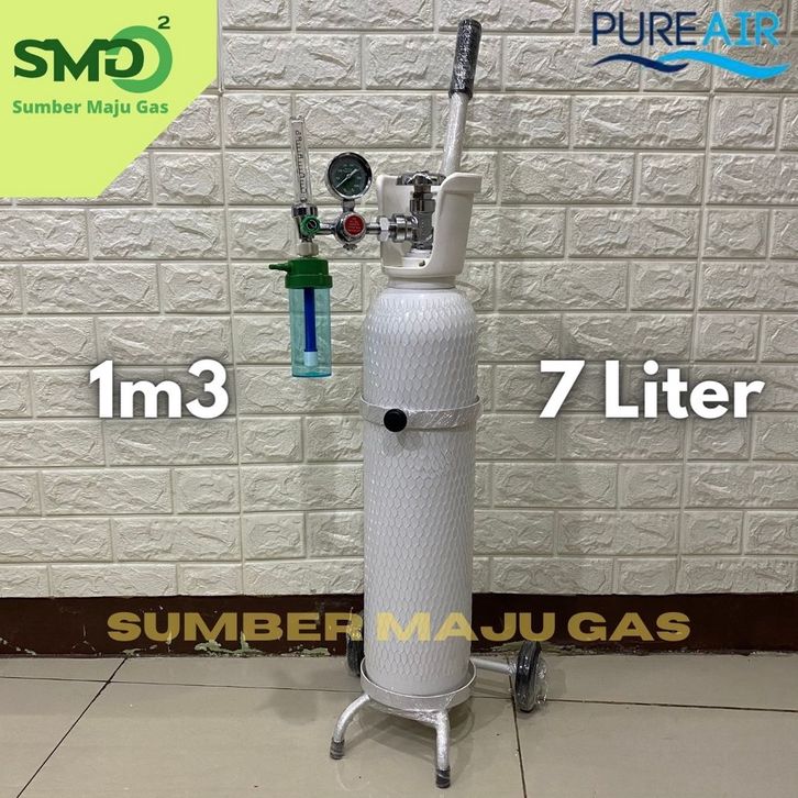 TABUNG OKSIGEN 1M3 LENGKAP SIAP PAKAI (+REGULATOR+SELANG+TROLI+ISI)