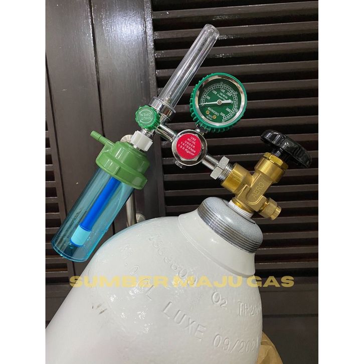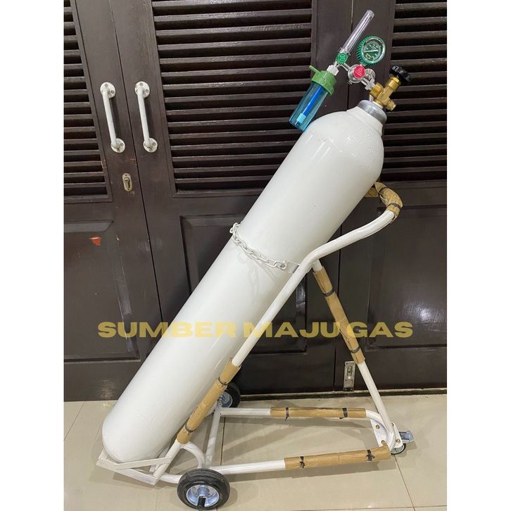 TABUNG OKSIGEN 6M3 BESAR LENGKAP SIAP PAKAI (+REGULATOR+SELANG+TROLI+ISI)