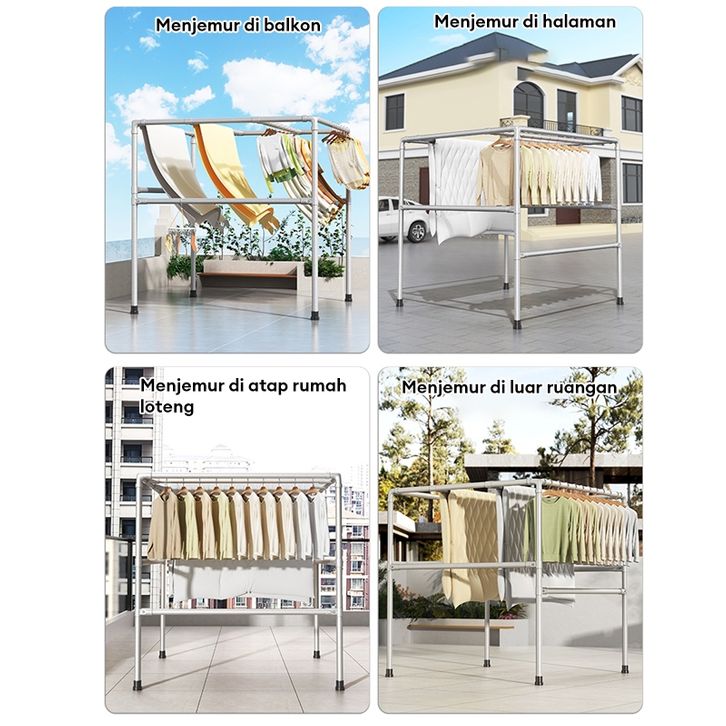 Jemuran Baju Jumbo Stainless Steel Rak Gantungan Baju Tabung Baja Persegi Serbaguna