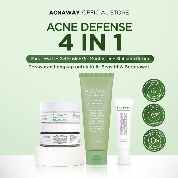 ACNAWAY Bundle 4 in 1 Acne Care, Defense & Basic Skincare | Rangkaian Lengkap untuk Kulit Berjerawat & Sensitif