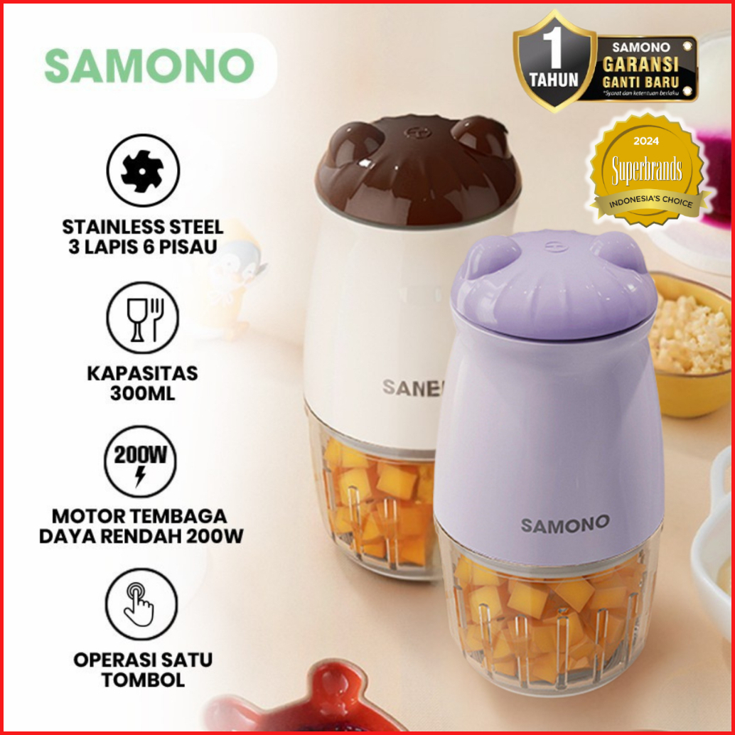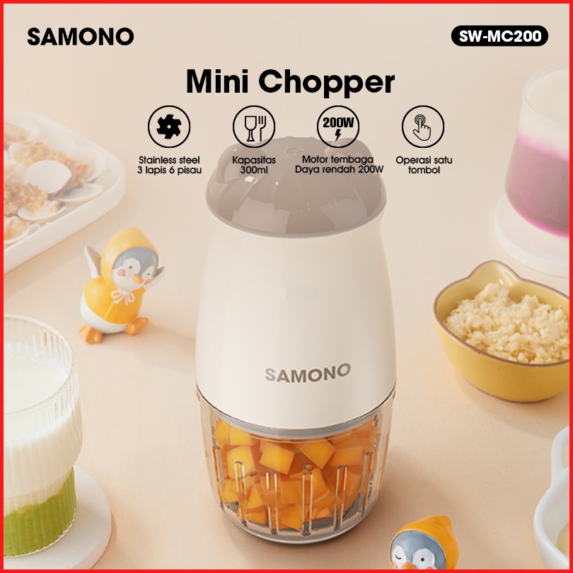 Samono Food Chopper Multifungsi 300ml Penghalus Daging Dan Bumbu Garansi Resmi 1 Tahun Sw-mc200