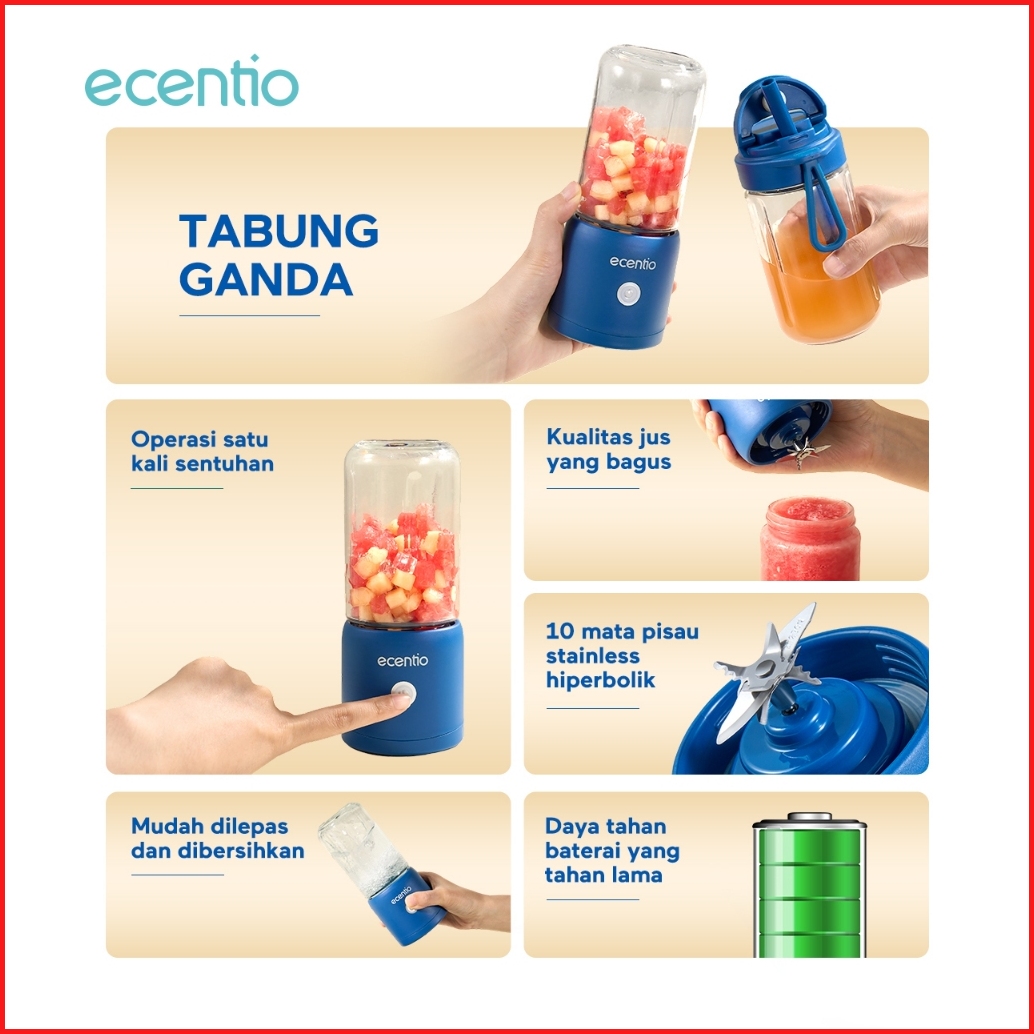 In Stokecentio Blender 10 Pisau Juicer Kaca Tebal 2 Cup Mini Portable Dengan Sedotan 380ml 380ml