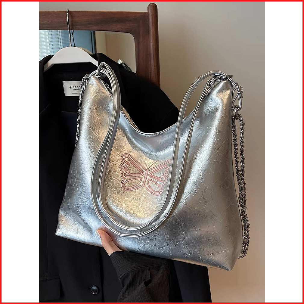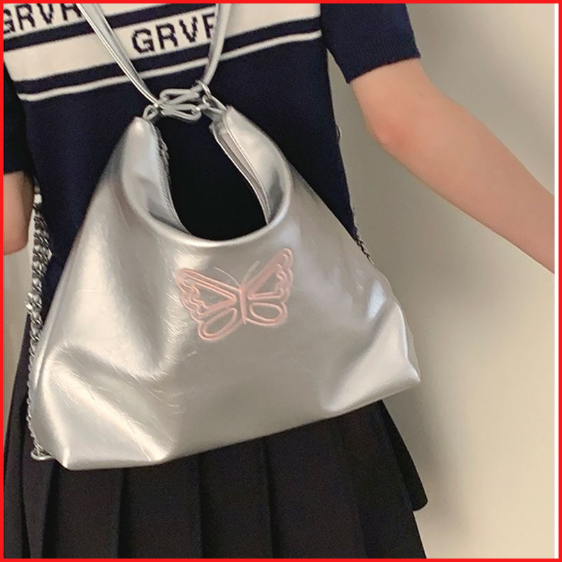 Ransel Wanita Kapasitas Besar Permukaan Lembut Kasual Ransel Gaya Baru Tas Ember Bahu Serbaguna Kupu-kupu Bordir Modis