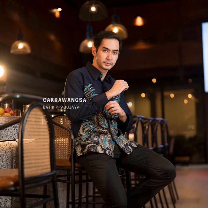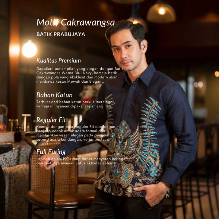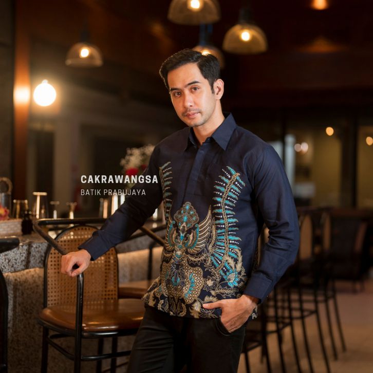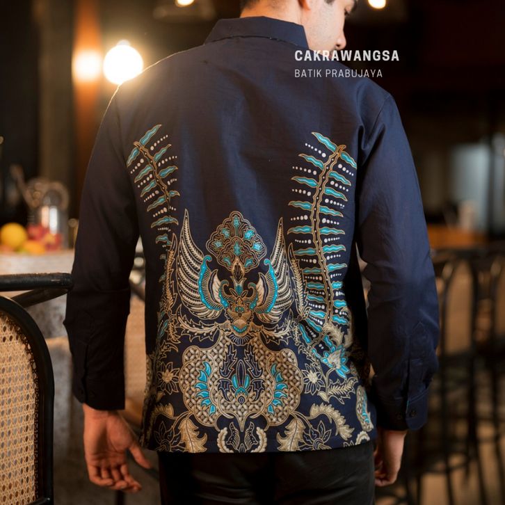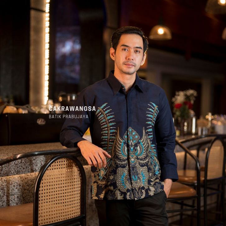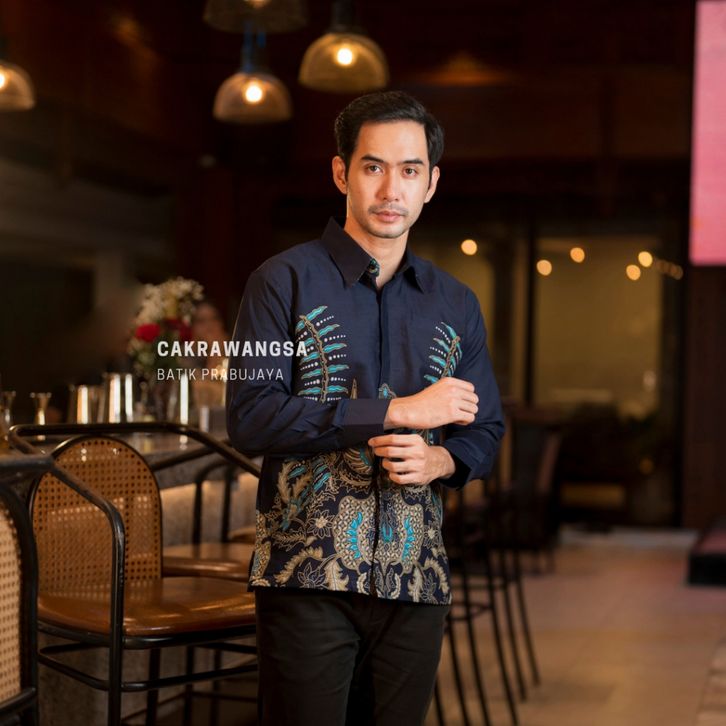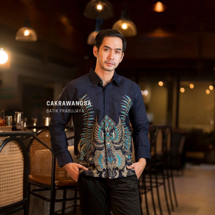 CAKRAWANGSA Kemeja Batik Pria Lengan Panjang Modern Premium Full Furing Katun Halus Biru Navy FREE ONGKIR