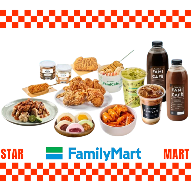 Ice Ruby Cashew Latte-OL, Ice Kopi Susu Keluarga-OL, Ice Kopsus Cashew-OL, Ice Dolce Latte-OL, Es Kacang Hijau-OL, Ice Chocolate Cashew-OL, Es Ketan Hitam-OL, Ice Matcha Cashew-OL, Ice Green Tea Latte-OL, Ice Premium Chocolate-OL, Ice Creamy Hazelnut Latte-OL, Ice Vanilla Latte-OL, Ice Cafe Latte-OL, Ice Cappucino-OL, Ice Americano-OL, Ice Brown Sugar Fresh Milk Tea Bubble-OL, Ice Brown Sugar Fresh Milk Bubble-OL, Hot Kopi Susu Keluarga-OL, Hot Green Tea Latte-OL, Hot Premium Chocolate-OL, Hot Dolce Latte-OL, Hot Vanilla Latte-OL, Hot Latte-OL, Hot Cappucino-OL, Hot Americano-OL, Ice Lemon Yakult-OL, Menu Request FamilyMart, Nasi Crispy Chicken A OL, Nasi Crispy Chicken B OL, DUO Crispy Chicken OL, Paket Crispy Chicken Hot & Spicy Dada-OL, Paket CC Hot & Spicy Dada Tulang-OL, Paket CC Hot & Spicy Paha Atas-OL, Paket CC Hot & Spicy Paha Bawah-OL, Paket Crispy Chicken Hot & Spicy Wing-OL, Paket Boneless CC Hot & Spicy-OL, Paket CC Korean Buldak Dada Tulang OL, Paket CC Korean Buldak Paha Bawah OL, Paket Crispy Chicken Buldak Cheese OL, Paket Nasi CC Honey Mustard Buldak OL, Nasi Crispy Chicken Gulai-OL, Pao Isi Ayam BBQ-OL, Pao Isi Salted Egg-OL, Pao Klepon, Pao Ayam Kecap Besar-OL, Pao Coklat Besar-OL, Pao Taro-OL, Siomay Ayam Udang (1 Pcs), Siomay Ayam Udang Goreng (1 Pcs), Siomay Ikan (1 Pcs), Tahu Pedas, Risoles Smoked, Sosis Guling Chili Mayo, Sosis Guling BBQ Mayo, Sosis Guling Cheese Buldak, Sosis Guling Honey Mustard Buldak, Tip Driver, Paket Oden Combo 3-OL, Paket Oden Combo 1-OL, Paket Oden Combo 2-OL, Tteokbokki-OL, Cheesebokki-OL, Coffee Pudding-OL, Pudding Coffee Jelly-OL, Kaastangel Cake-OL, Strawberry Short Cake-OL, Tiramisu Cake-OL, Chocolate Cake-OL, Combo SUPER A-OL, Combo SUPER B-OL, Combo SUPER DUO-OL