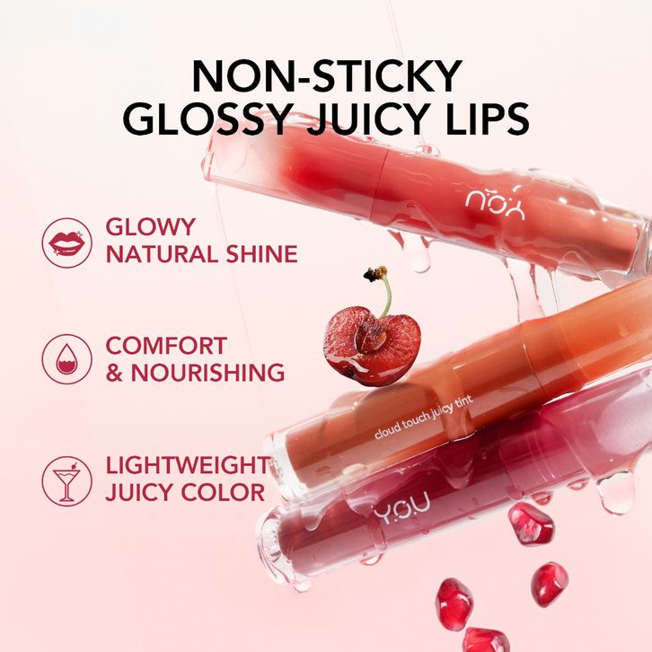 YOU Cloud Touch Juicy Tint | Healthy Glow Lips | Korean Style Liptint Gloss | Melembapkan Bibir | Lipstik with Ceramide