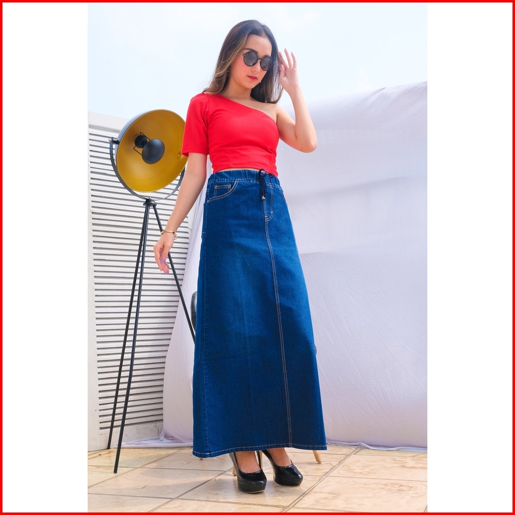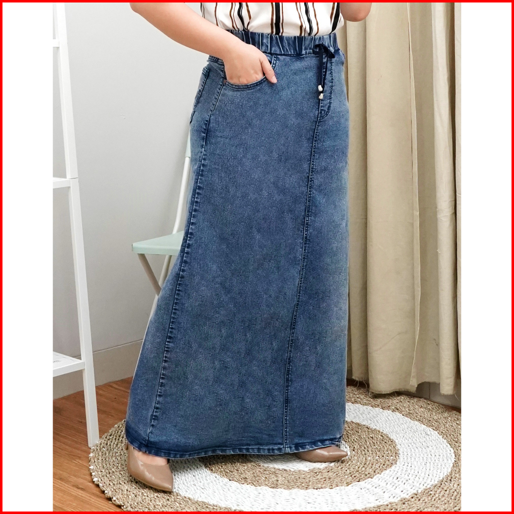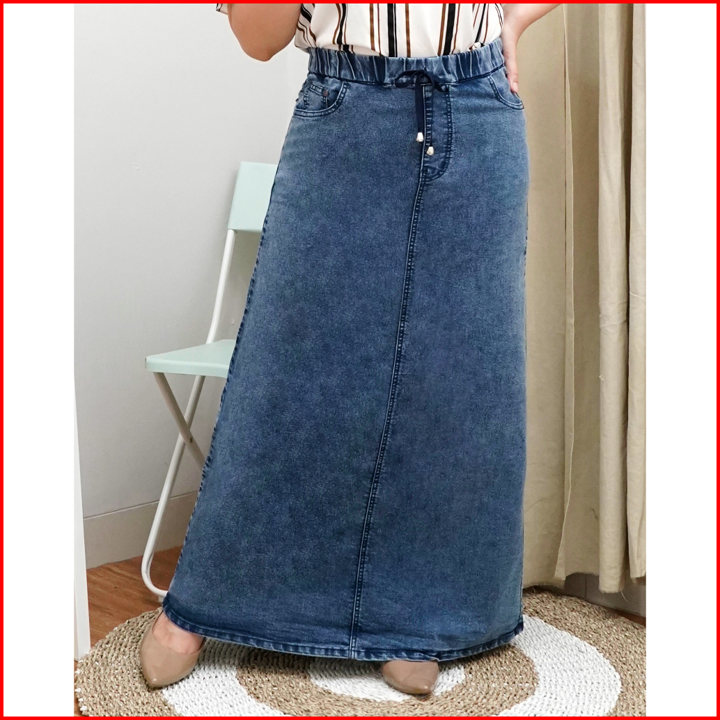 Bandidas - Hw Rok Jeans Panjang Wanita Jumbo Pinggang Karet 4 Warna