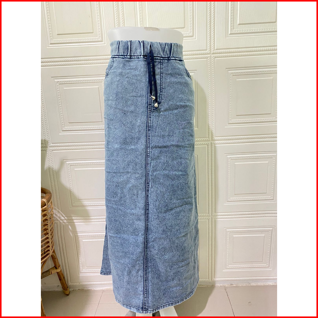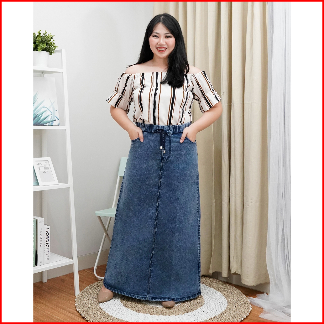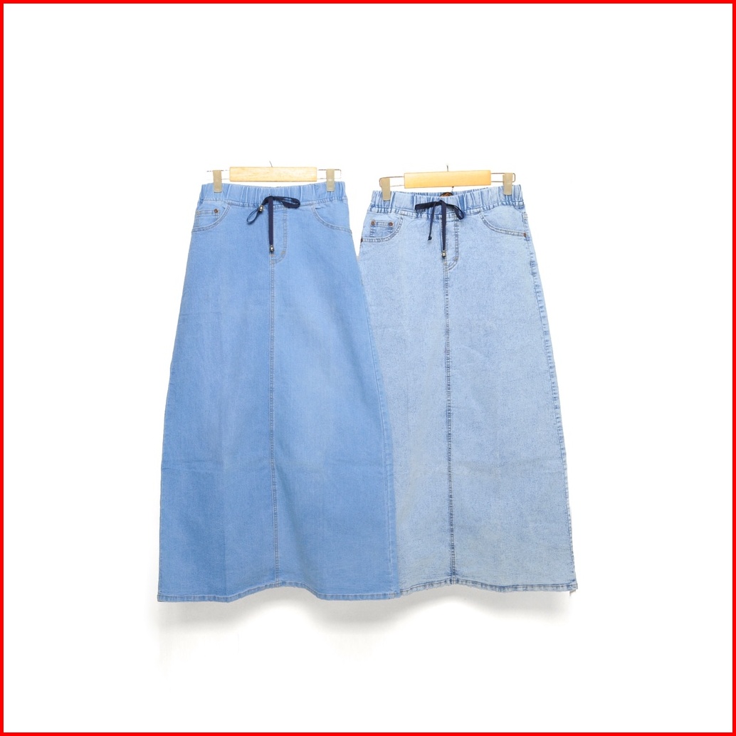 Bandidas - Hw Rok Jeans Panjang Wanita Jumbo Pinggang Karet 4 Warna