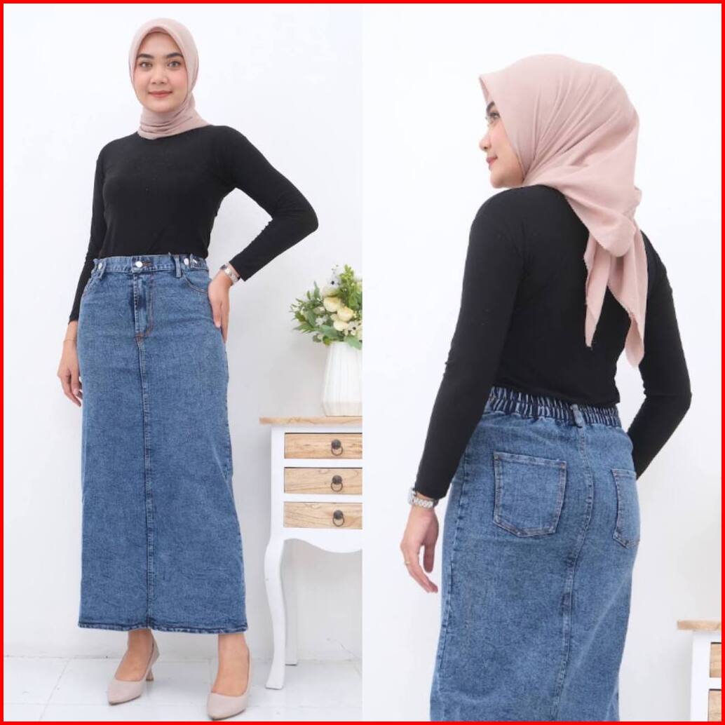 Rok Jeans Skinny Panjang Afika Standar Jumbo Extra Jumbo