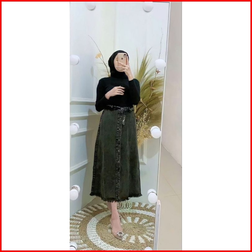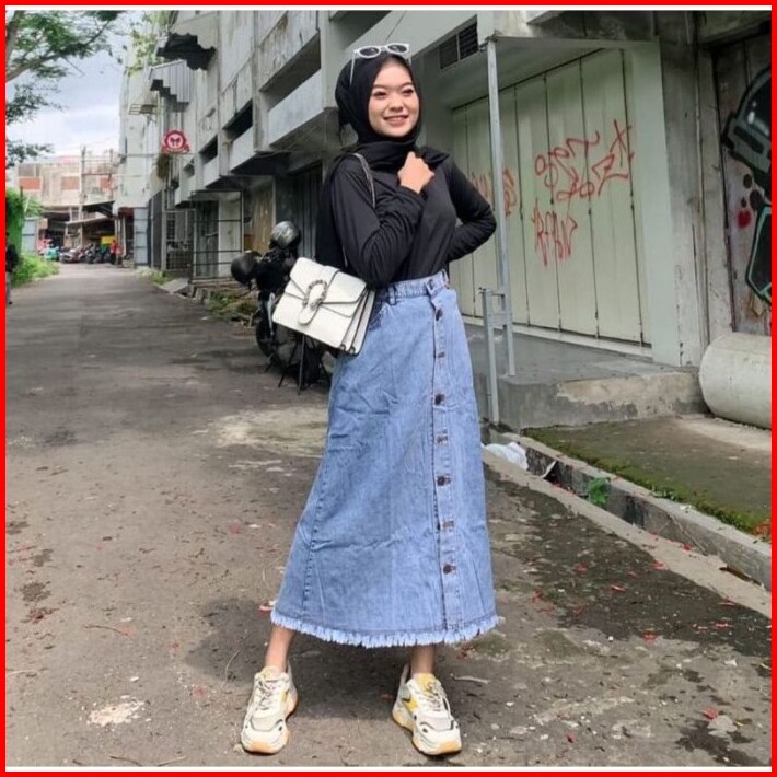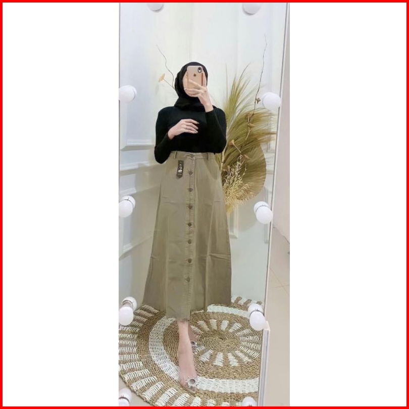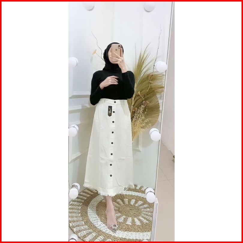 Rok Jeans Button Panjang Wanita Kancing Depan Button Rok Jins Denim Kekinian